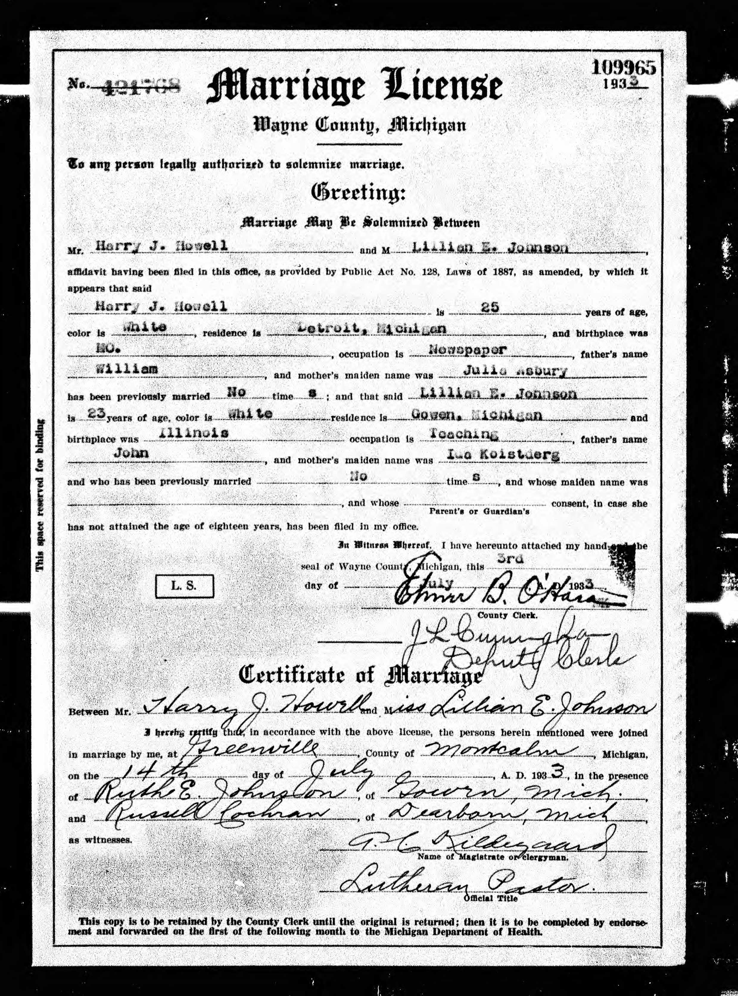 Family of Howell, Harry J. and Johnson, Lillian E.