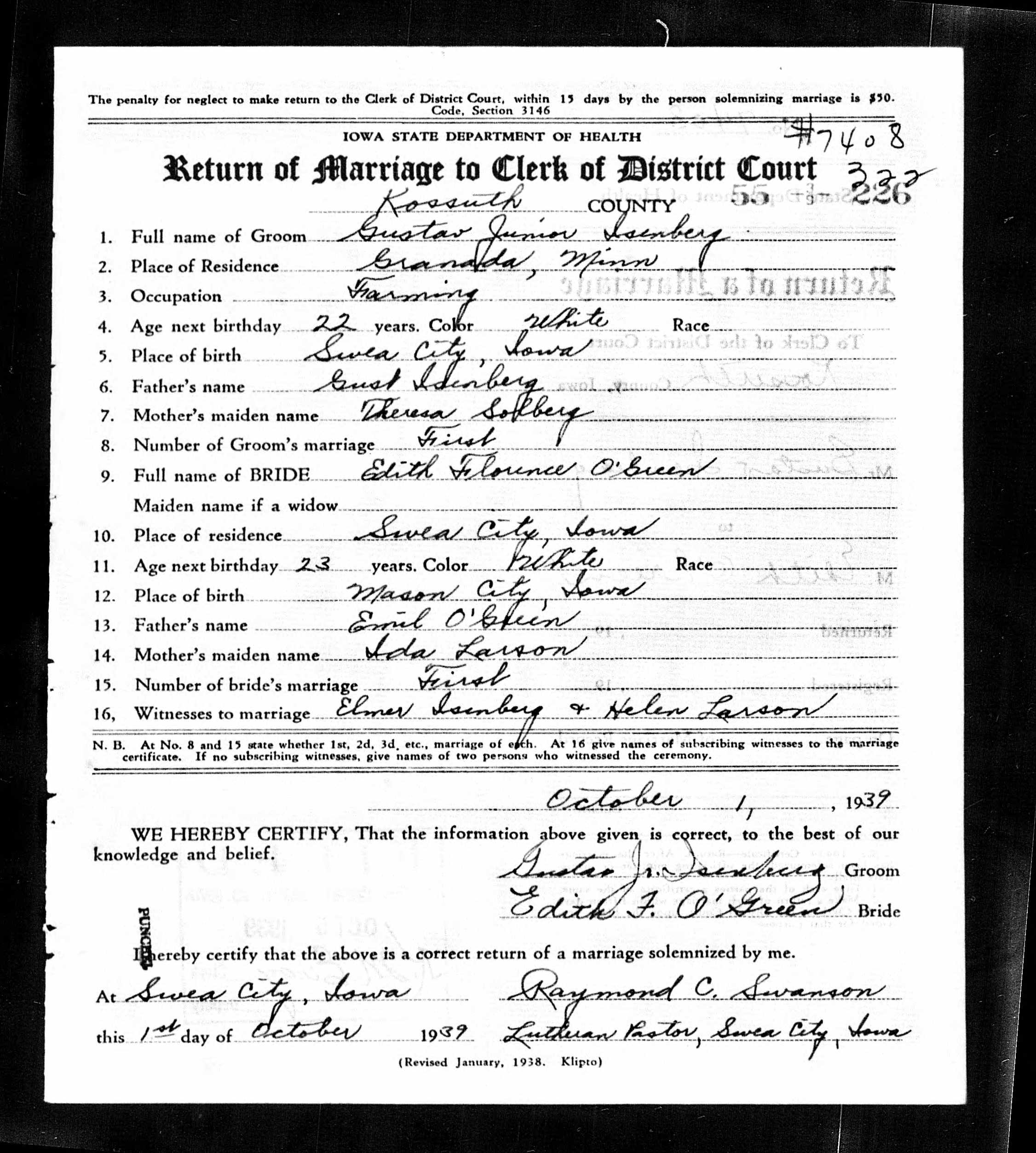 Family of Isenberg, Gustav Junior and O'Green, Edith Florence