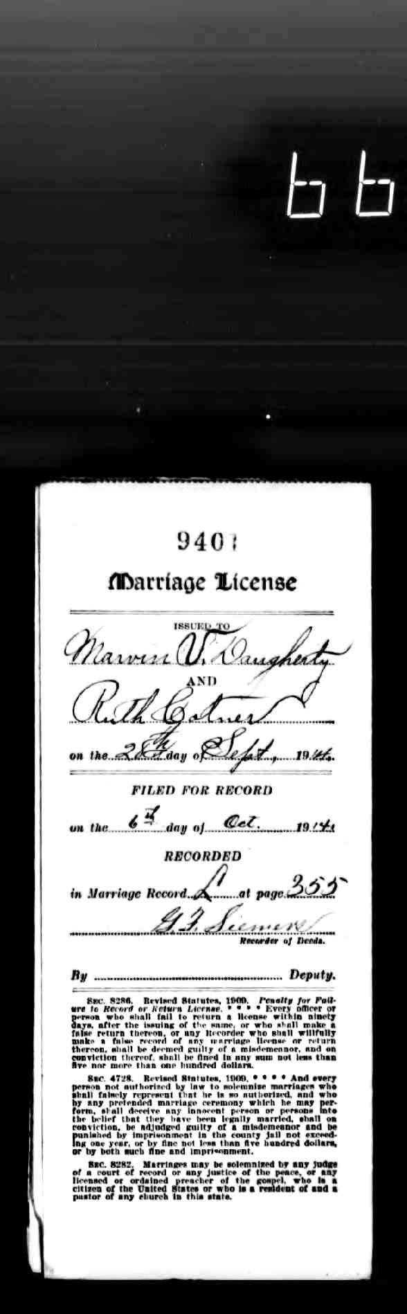 | Married | Husband | Daugherty, Marvin Virgin ( * 20 Jun 1883 + 12 Mar 1952 ) | |||||||||||||