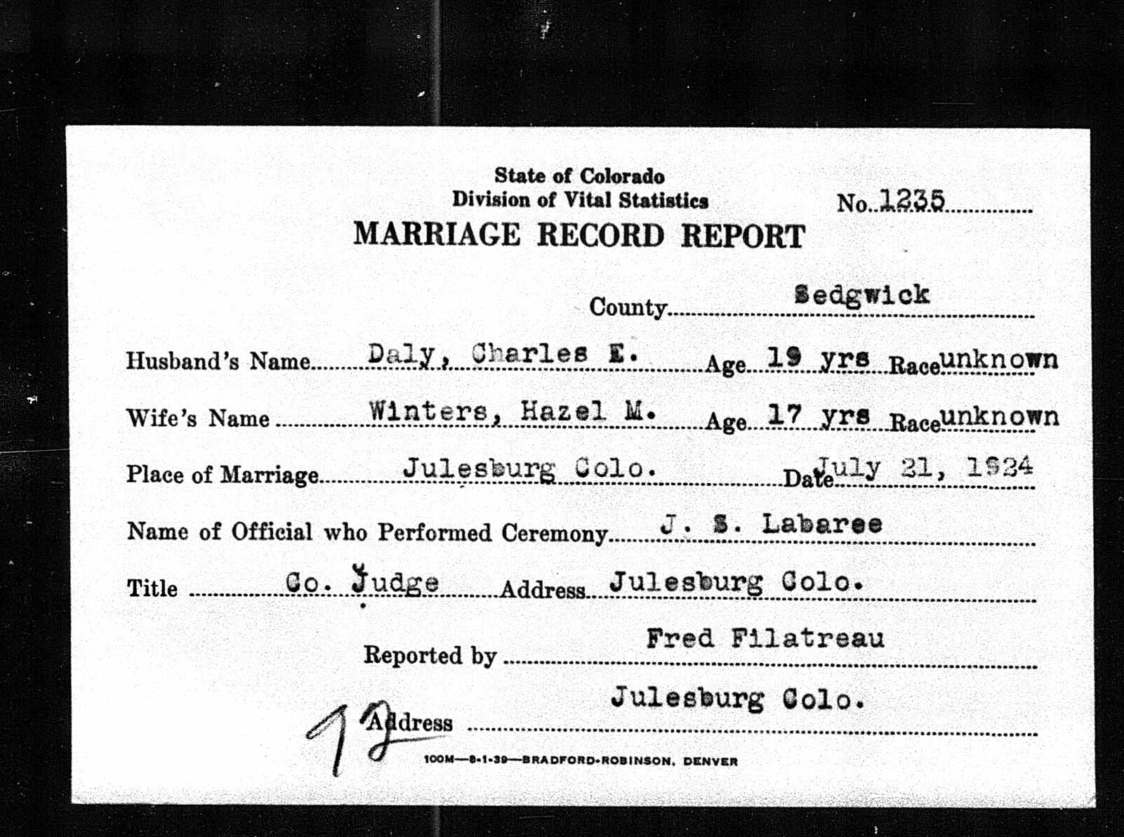 Family of Daly, Charles Edgar and Winters, Hazel Mildred