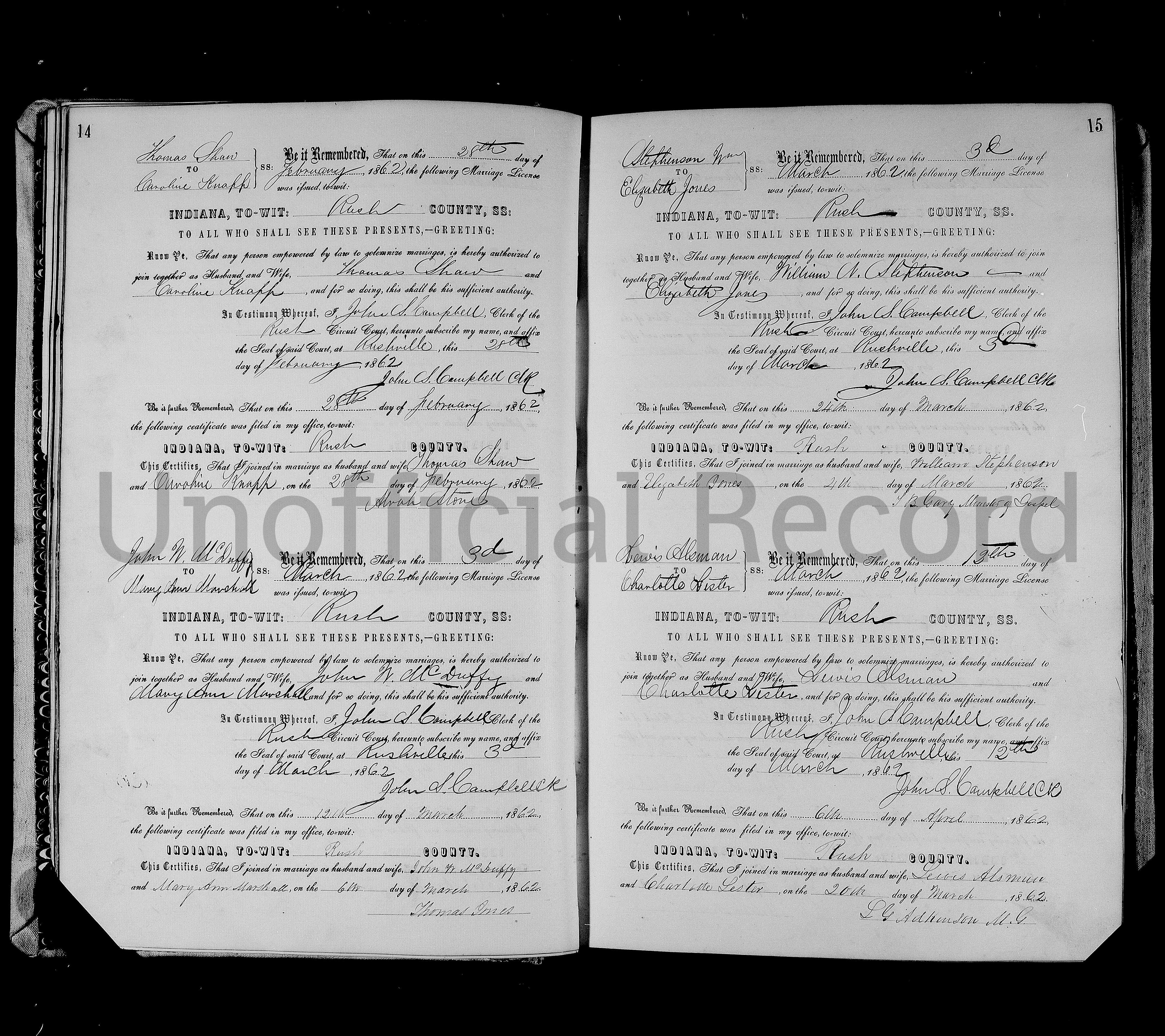 Family of McDuffee, John Wesley and Marshall, Mary Ann