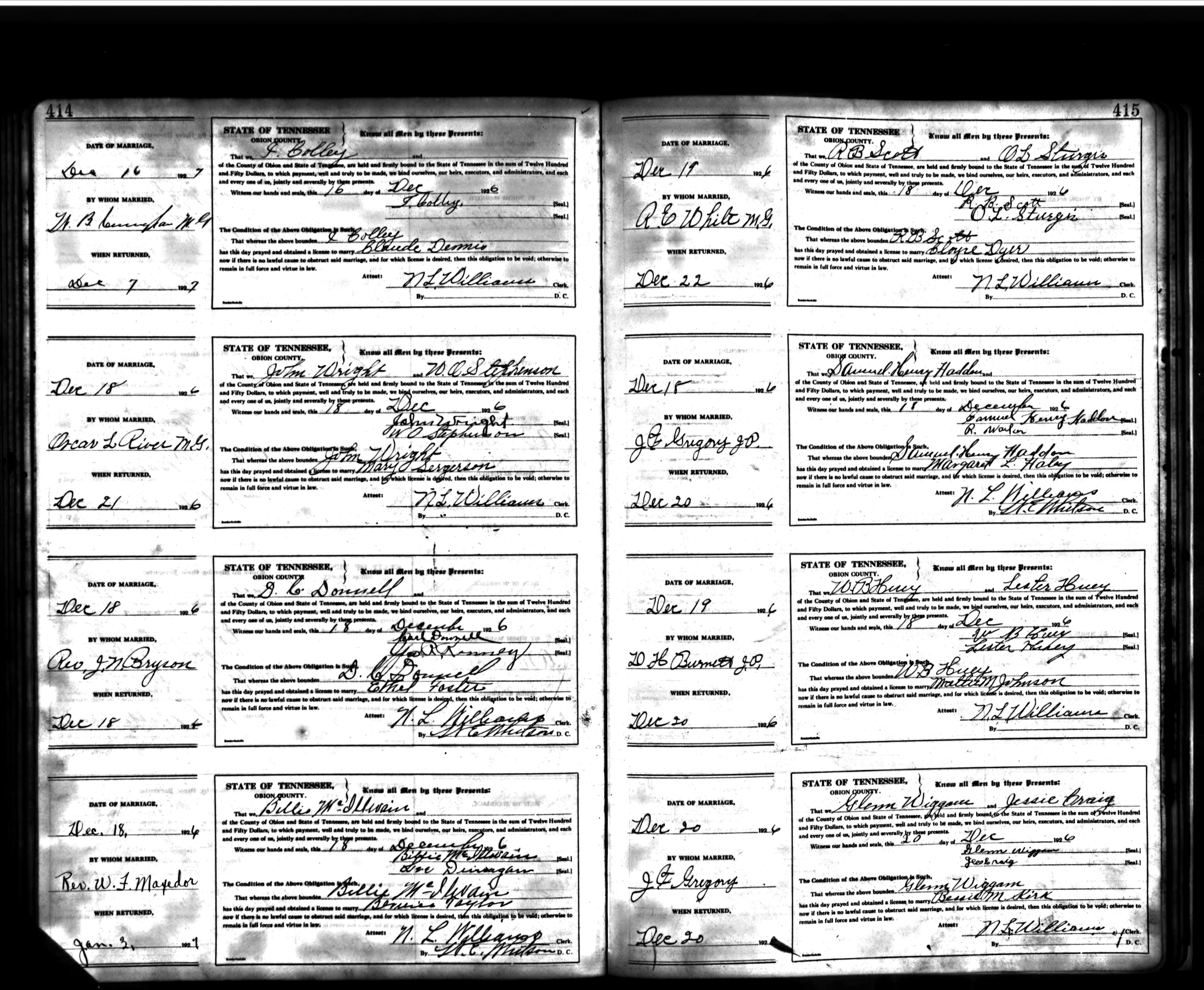 | Wright, Cora Helen | 27 Jul 1936 | 9 Jan 1938 |