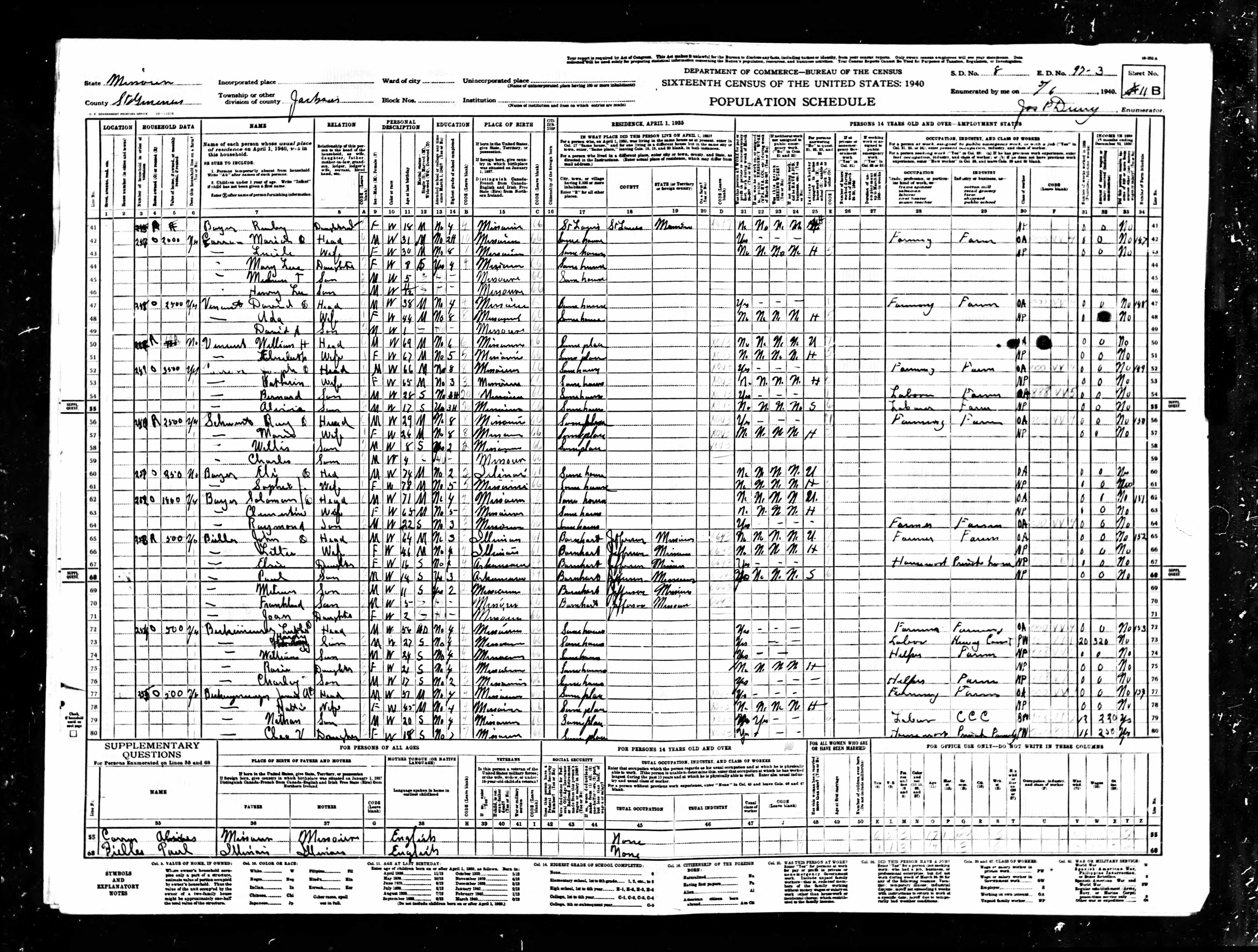 1940 Census, Jackson township, Ste. Genevieve county, Missouri