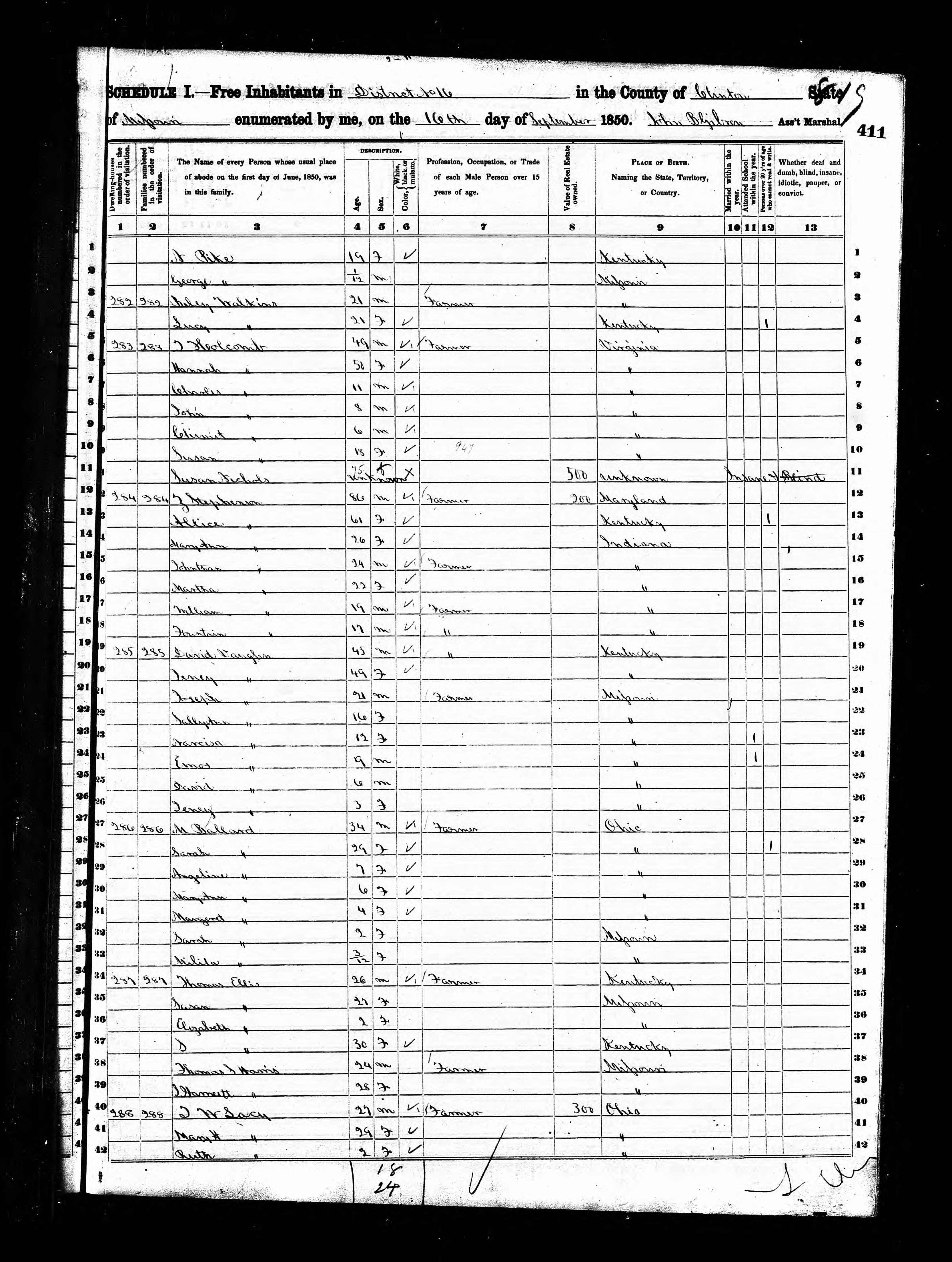 - Tully Pike Household, 1850 Census