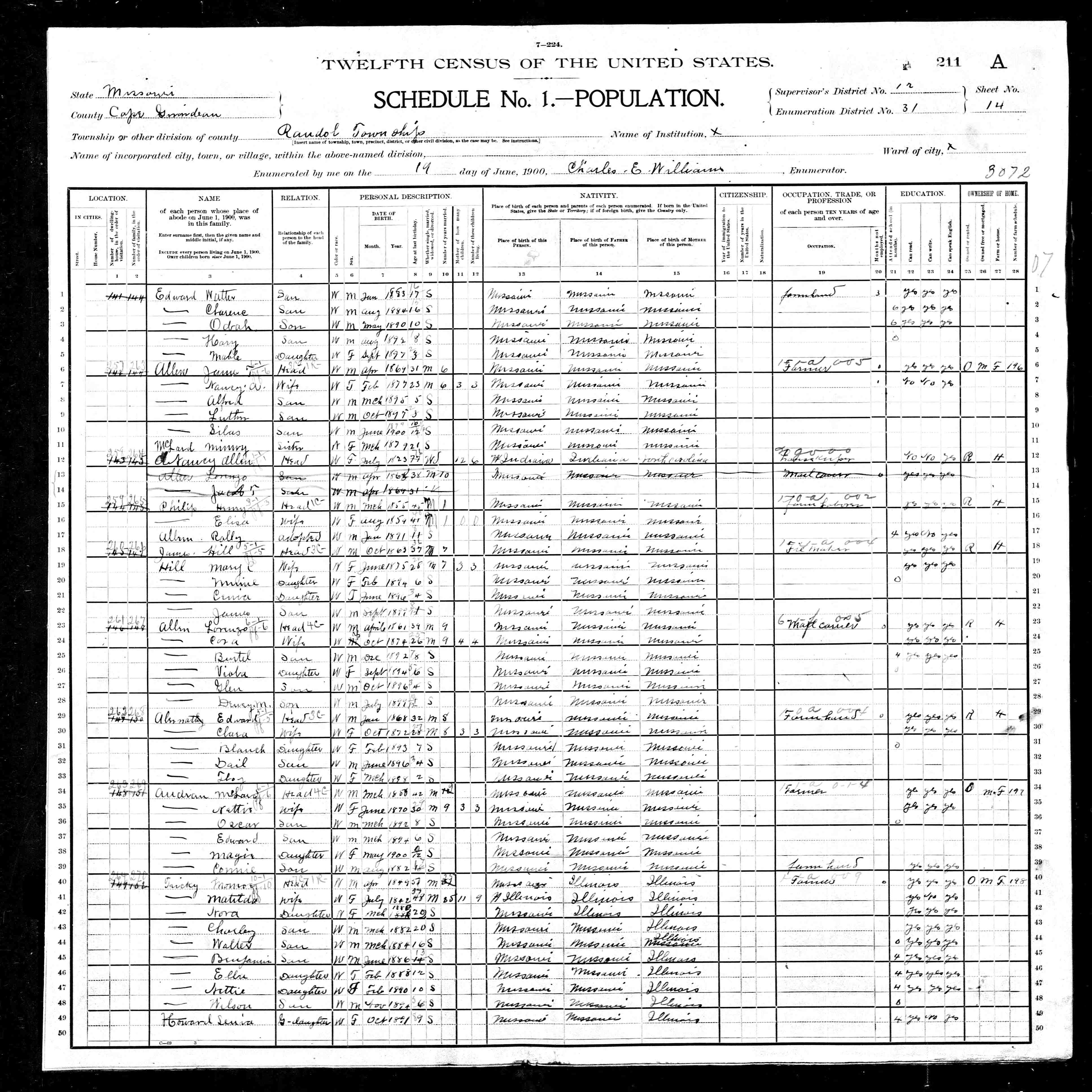 1900 Census, Randol township, Cape Girardeau county, Missouri