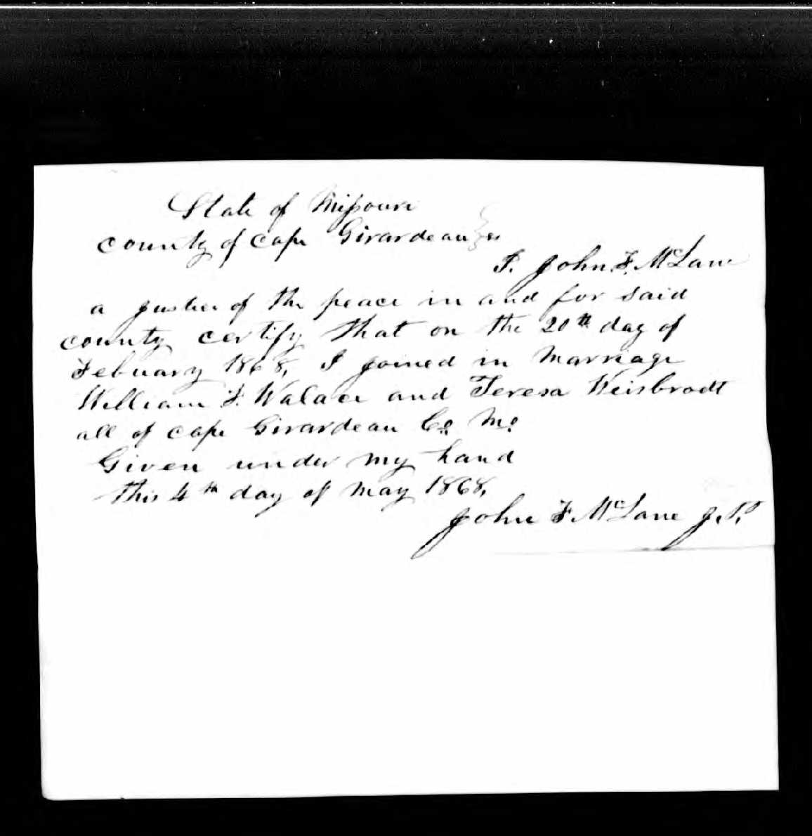 - Marriage, Family of Wallace, William Franklin and Weisbrod, Theresa Catharine