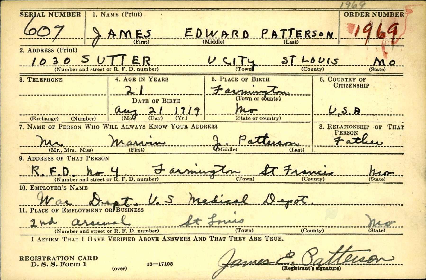 WWII Draft Registration, James Edward Patterson