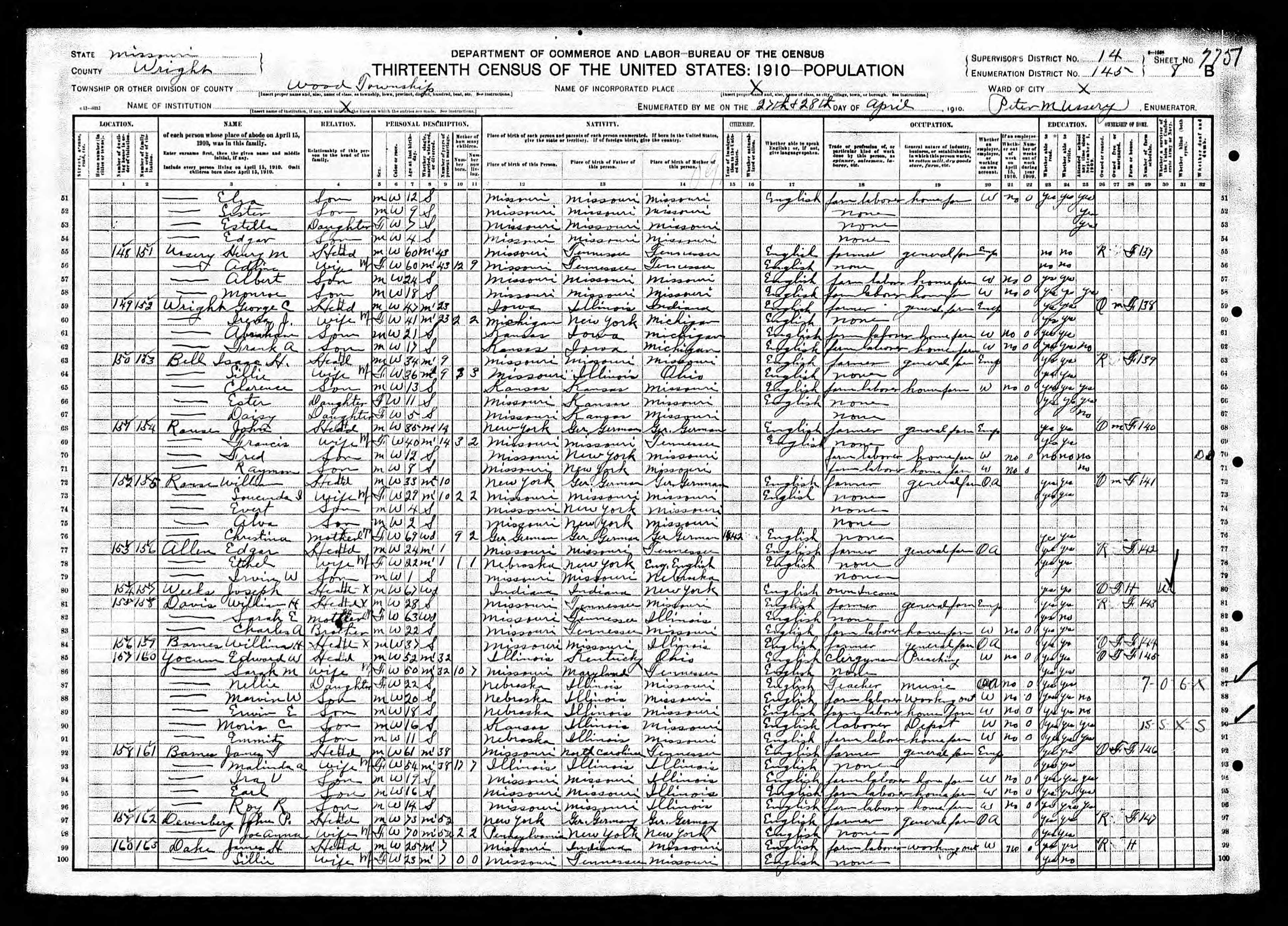 1910 Census, Wood township, Wright county, Missouri