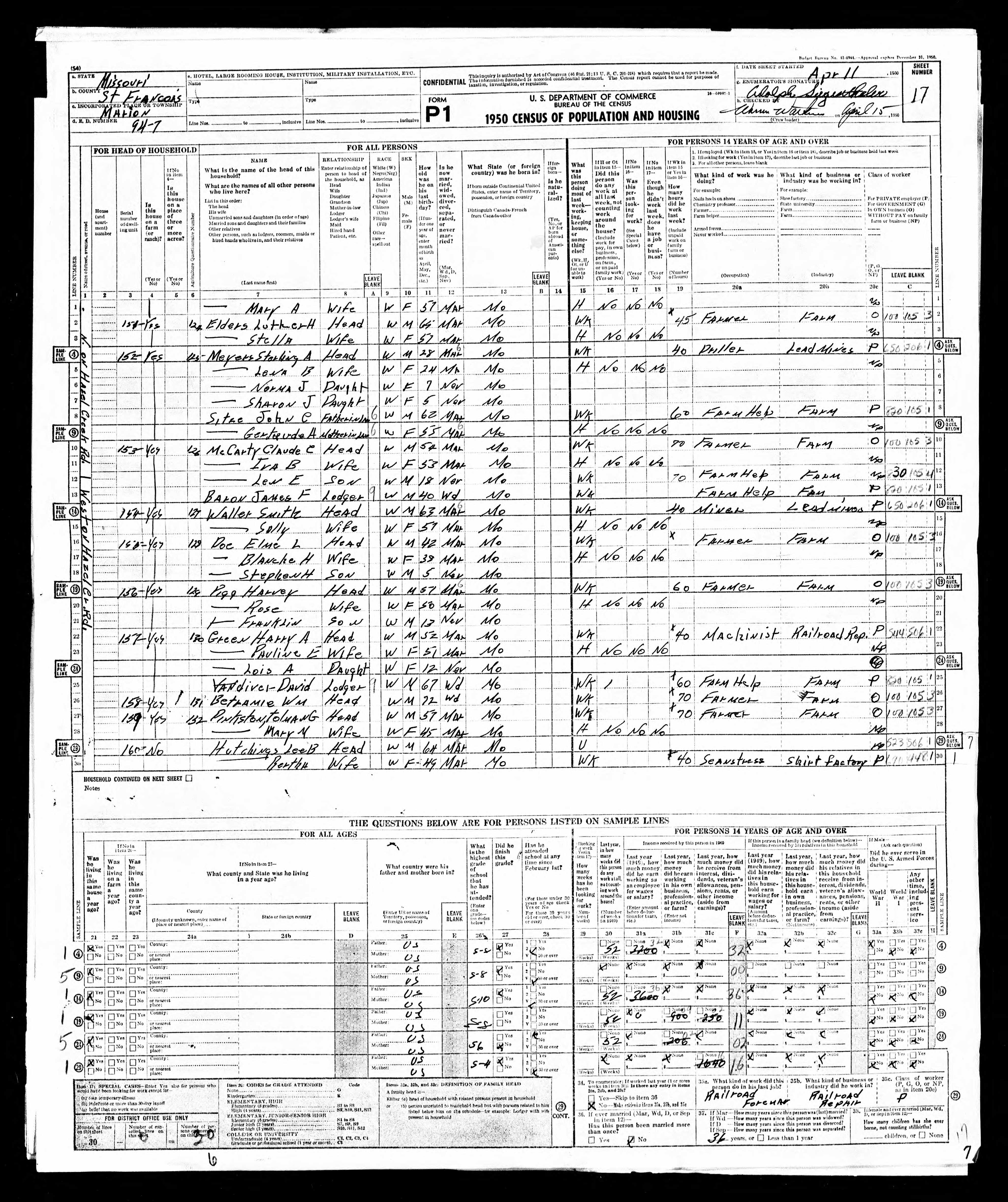 Sterling A. Meyers Household, 1950 Census