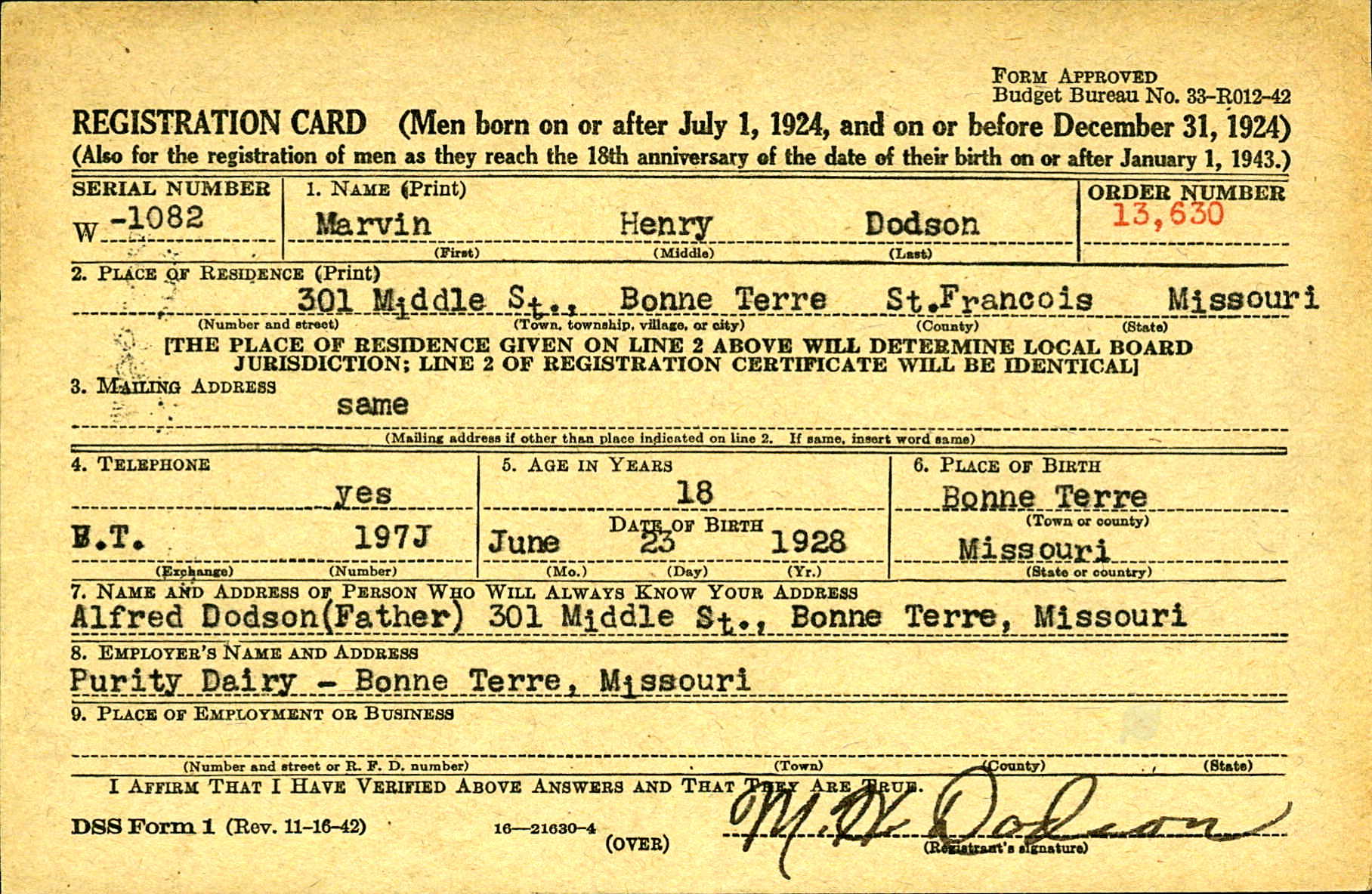 Draft Registration, Dodson, Marvin Henry