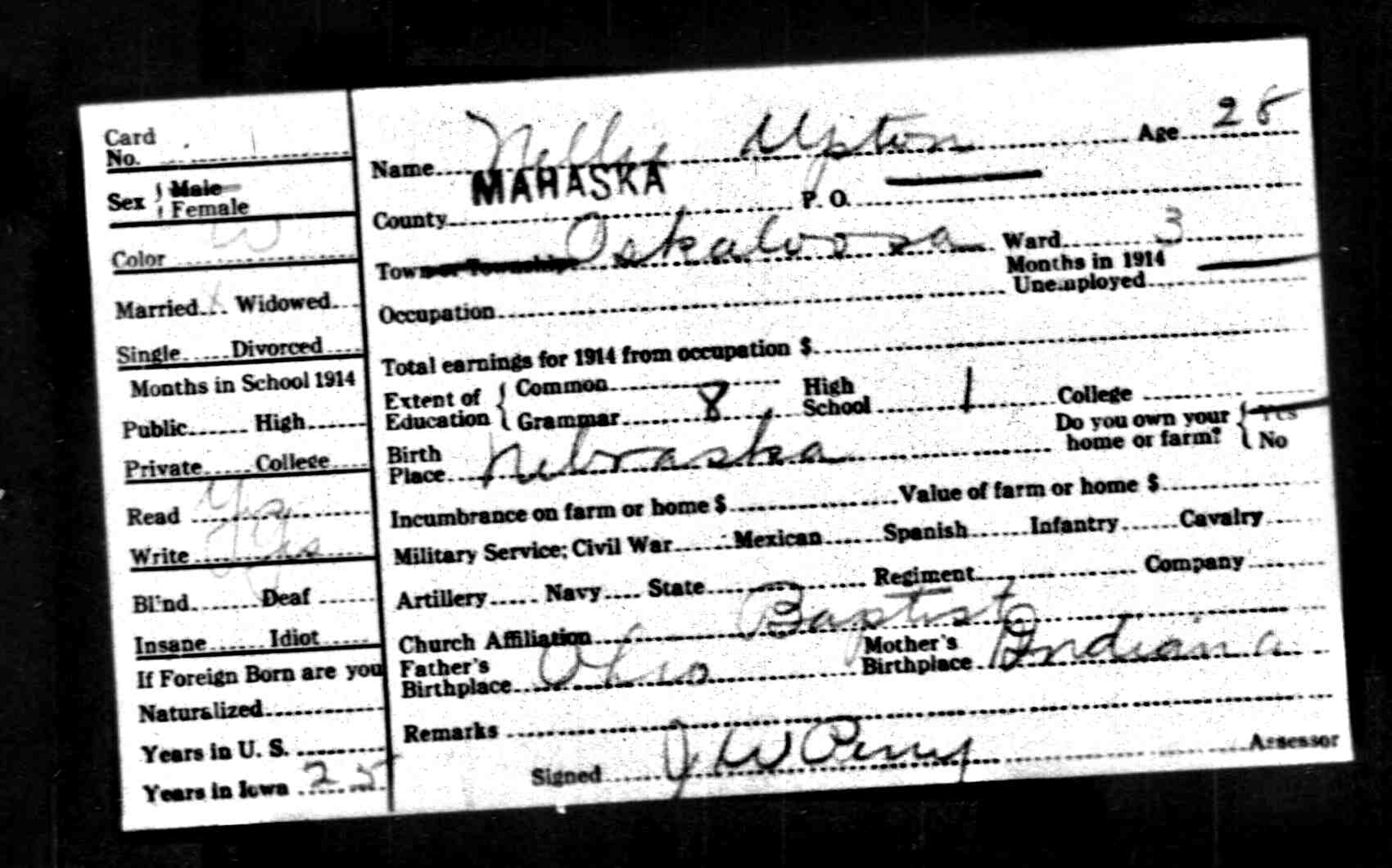 1915 Iowa Census, Oskaloosa, Mahaska county