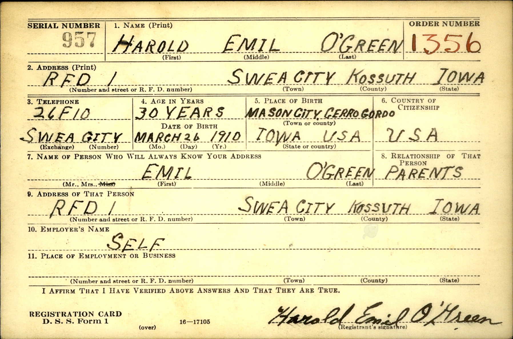 O'Green, Harold Emil 1a