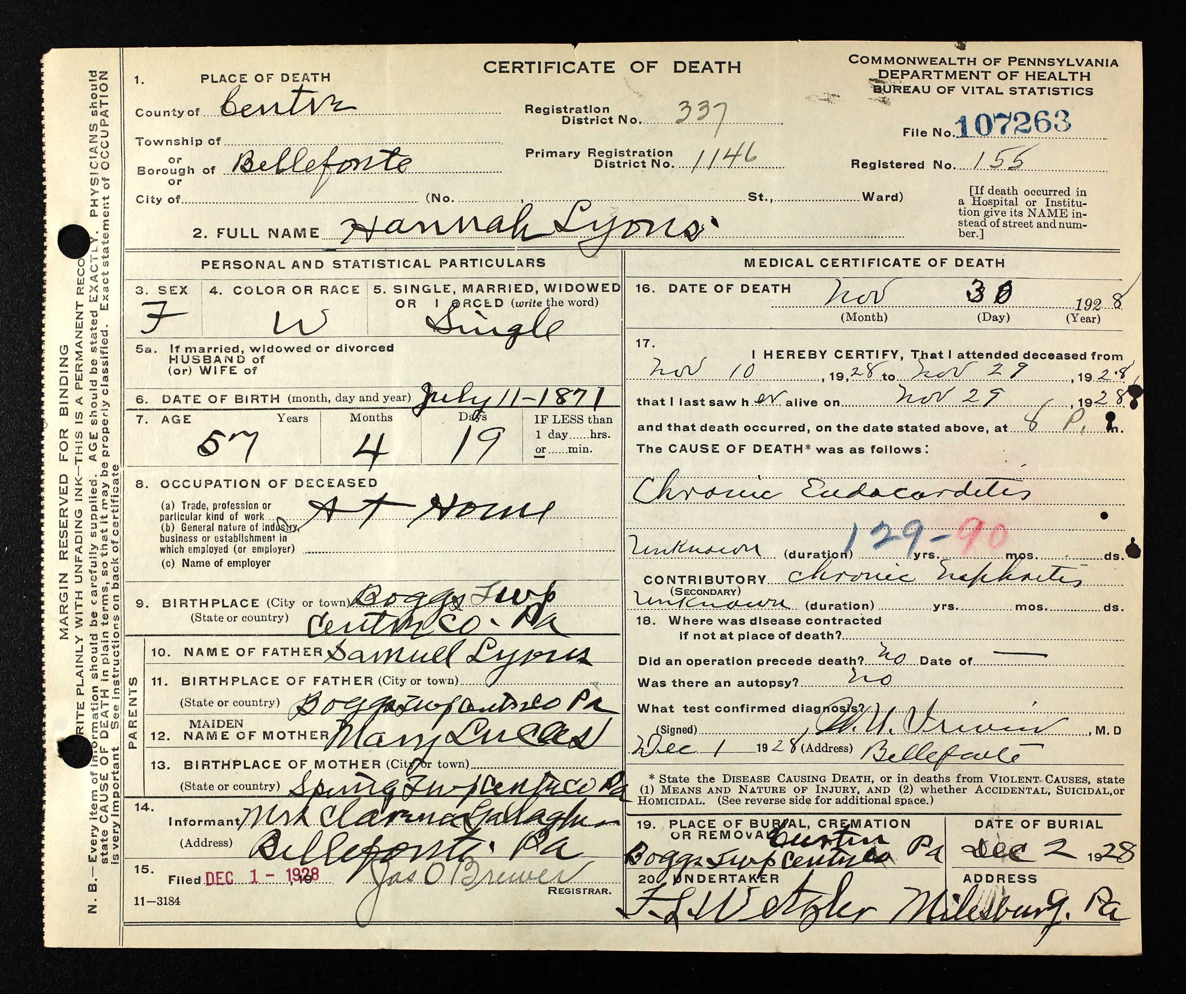| Death | 30 Nov 1928 | Bellefonte, Centre, Pennsylvania, United States of America | |||||||||||||||||||||||||||||||||||||||||||||||||||||||||||||||||||||||||||||||||||||||||||||||||||||||||||||||||||