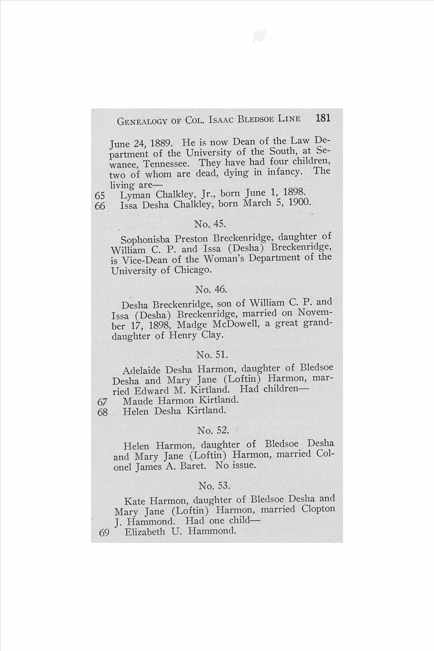 Family of Chalkley, Lyman and Breckinridge, Eleanor Desha |