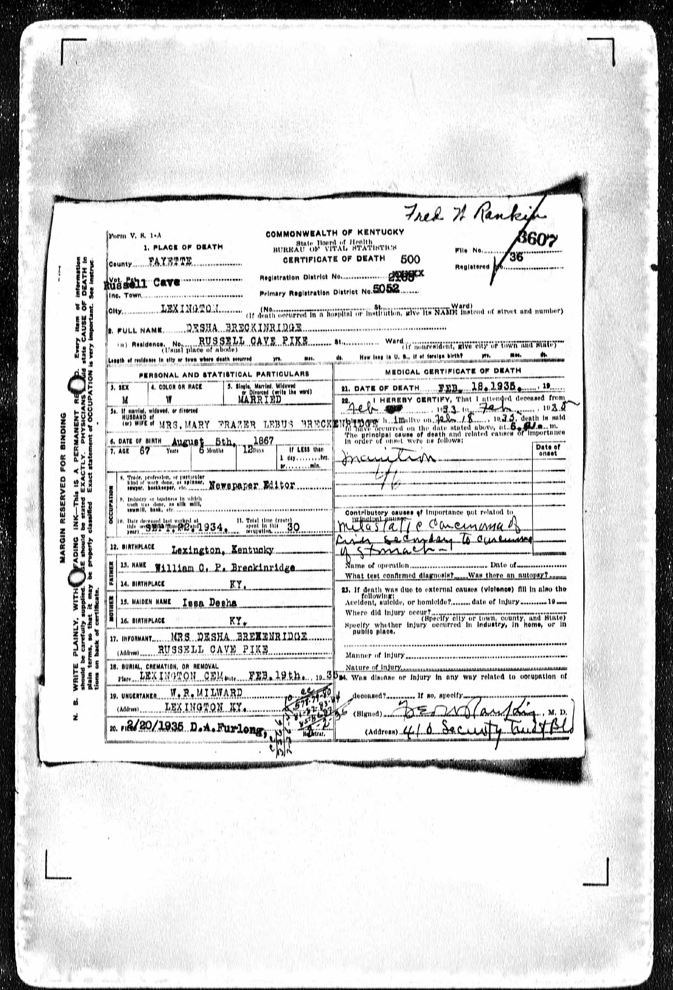 | Breckinridge, Desha | 5 Aug 1867 | 18 Feb 1935 | ||