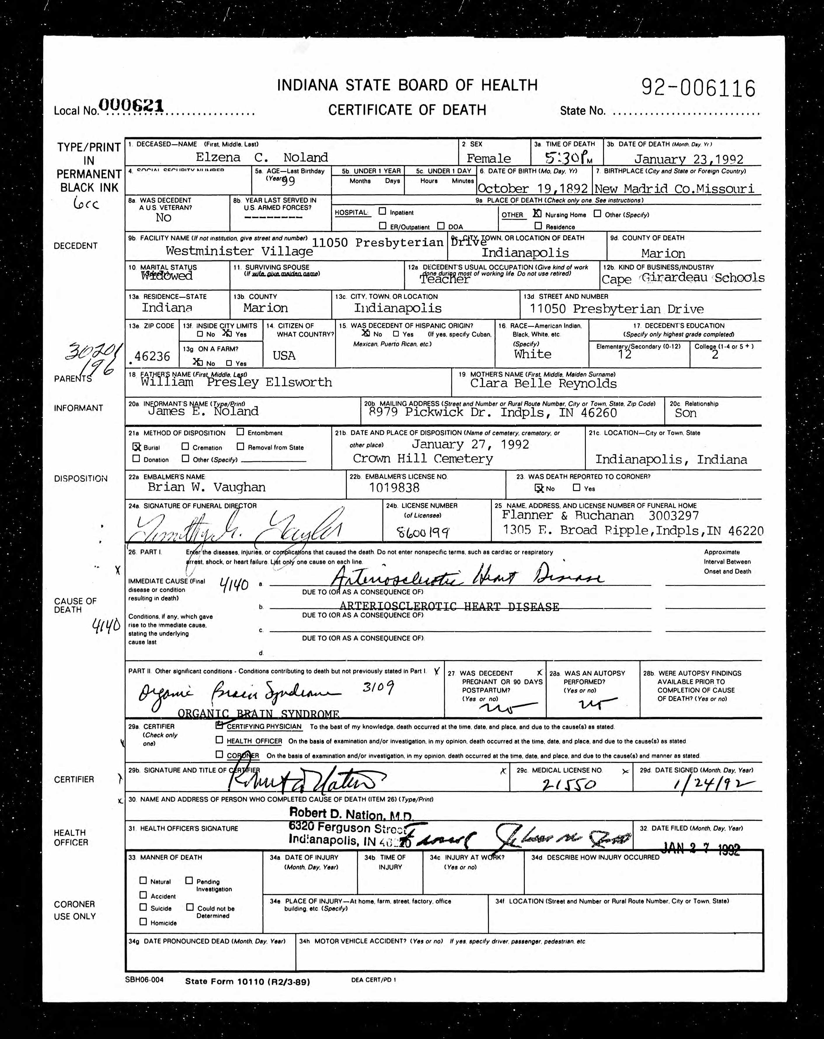 | Noland, James Ellsworth | 22 Apr 1920 | 12 Aug 1992 |