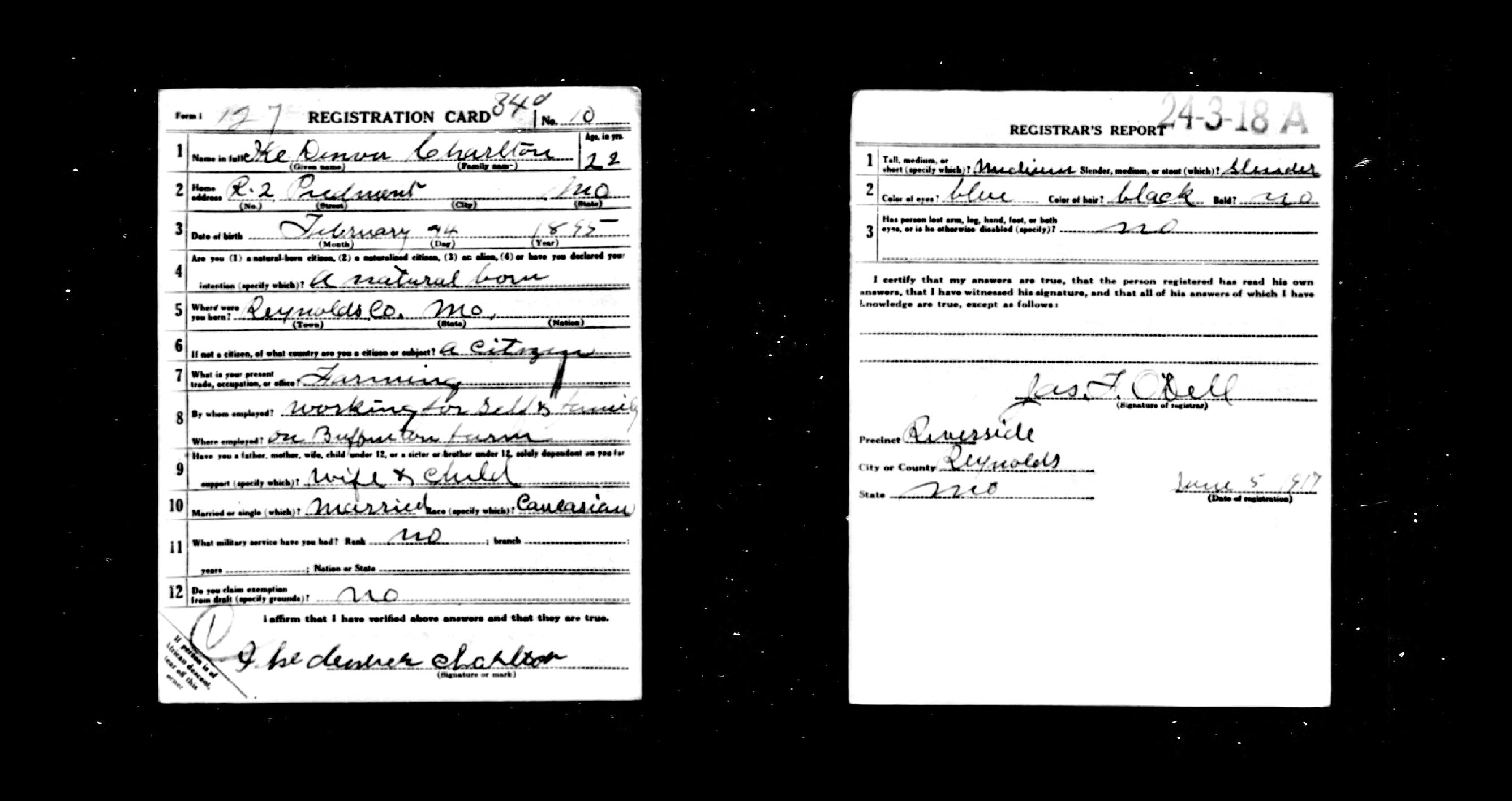 | Draft Registration | 5 Jun 1917 | Reynolds, Missouri, United States of America | ||||||||||||||||||||||||||||||||||||||||||||||||||||||||||||||||||||||||||||||||||||||||||||||||||||||||||||||||||||||||