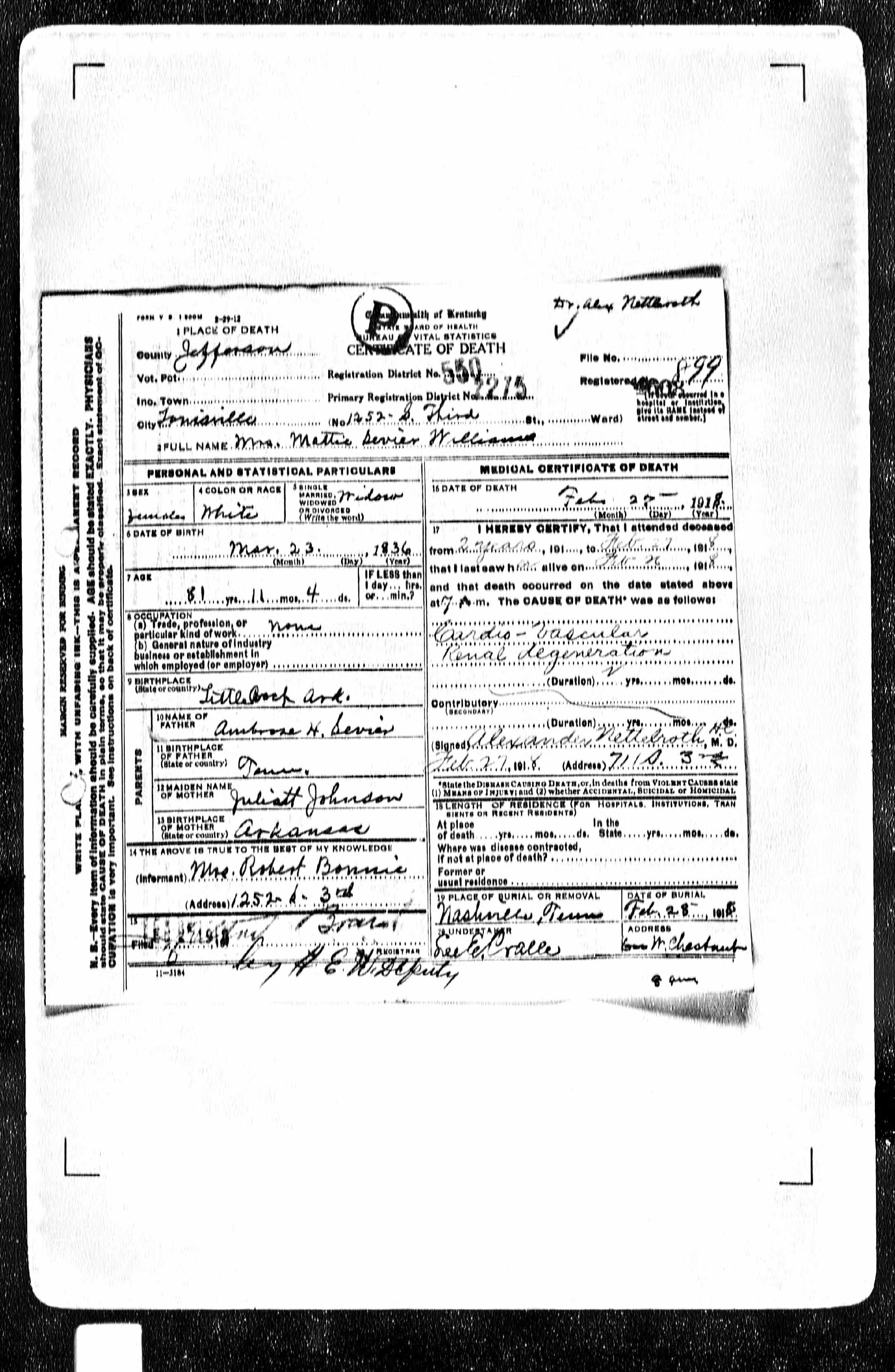 | Death | 27 Feb 1918 | Louisville, Jefferson, Kentucky, United States of America | ||||||||||||||||||||||||||||||||||||||||||||||||||||||||||||