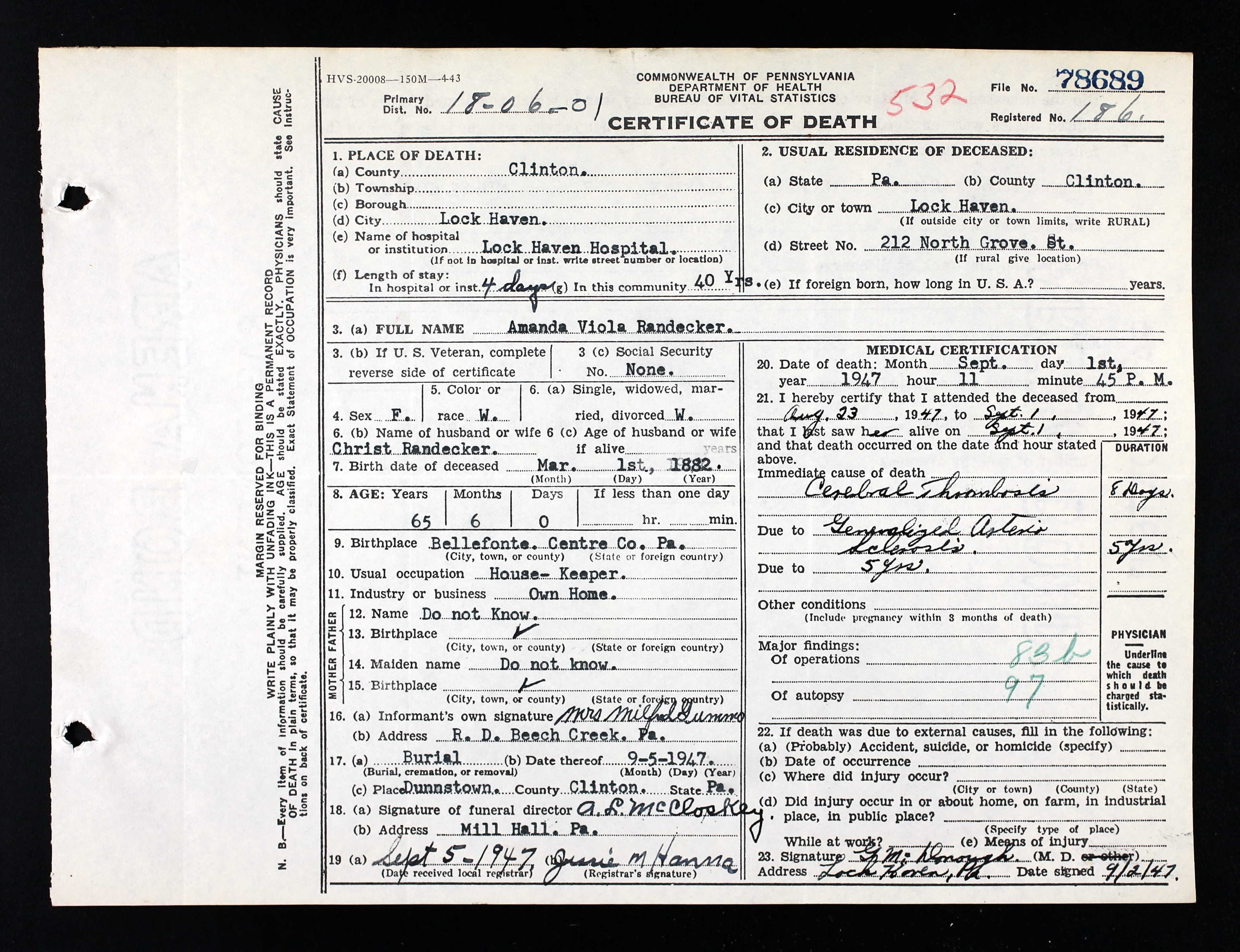 | Death | 1 Sep 1947 | Lock Haven Hospital, Lock Haven, Clinton, Pennsylvania, United States of America | |||||||||||||||||||||||||||||||||||||||||||||||||||||||||||||||||||||||||||||||||||||||||||||||||||||||||