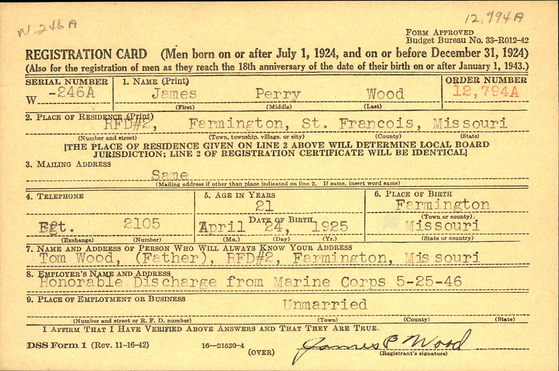 | Draft Registration | 25 May 1946 | St. Francois, Missouri, United States of America | |||||||||||||||||||||||||||||||||||||||||||||||||||||||||||||||||||||||||||||||||||||||||||||||||||||||||||||||||||||||||||||
