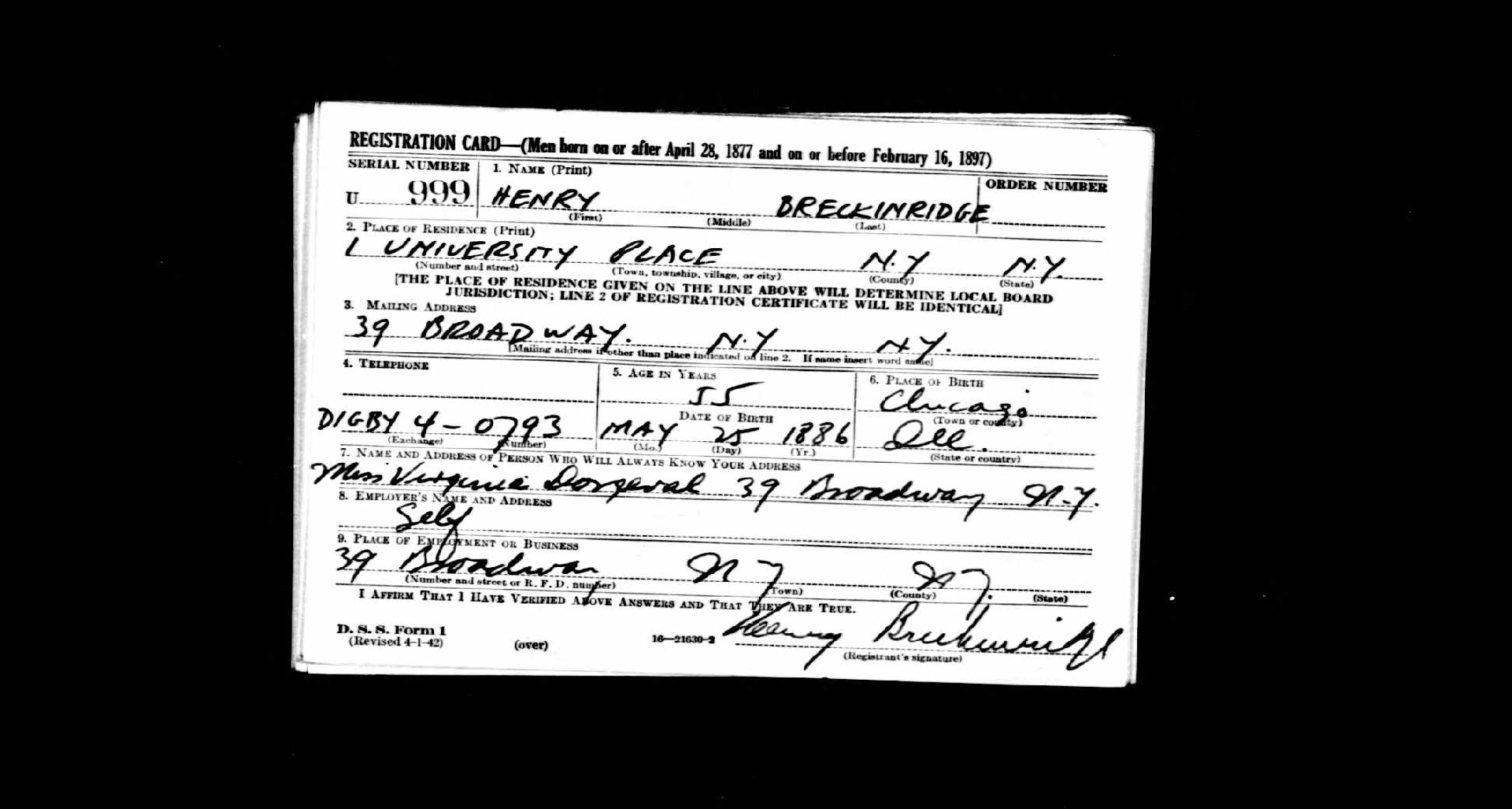 | Breckinridge, Henry Skillman | 25 May 1886 | 2 May 1960 | ||
