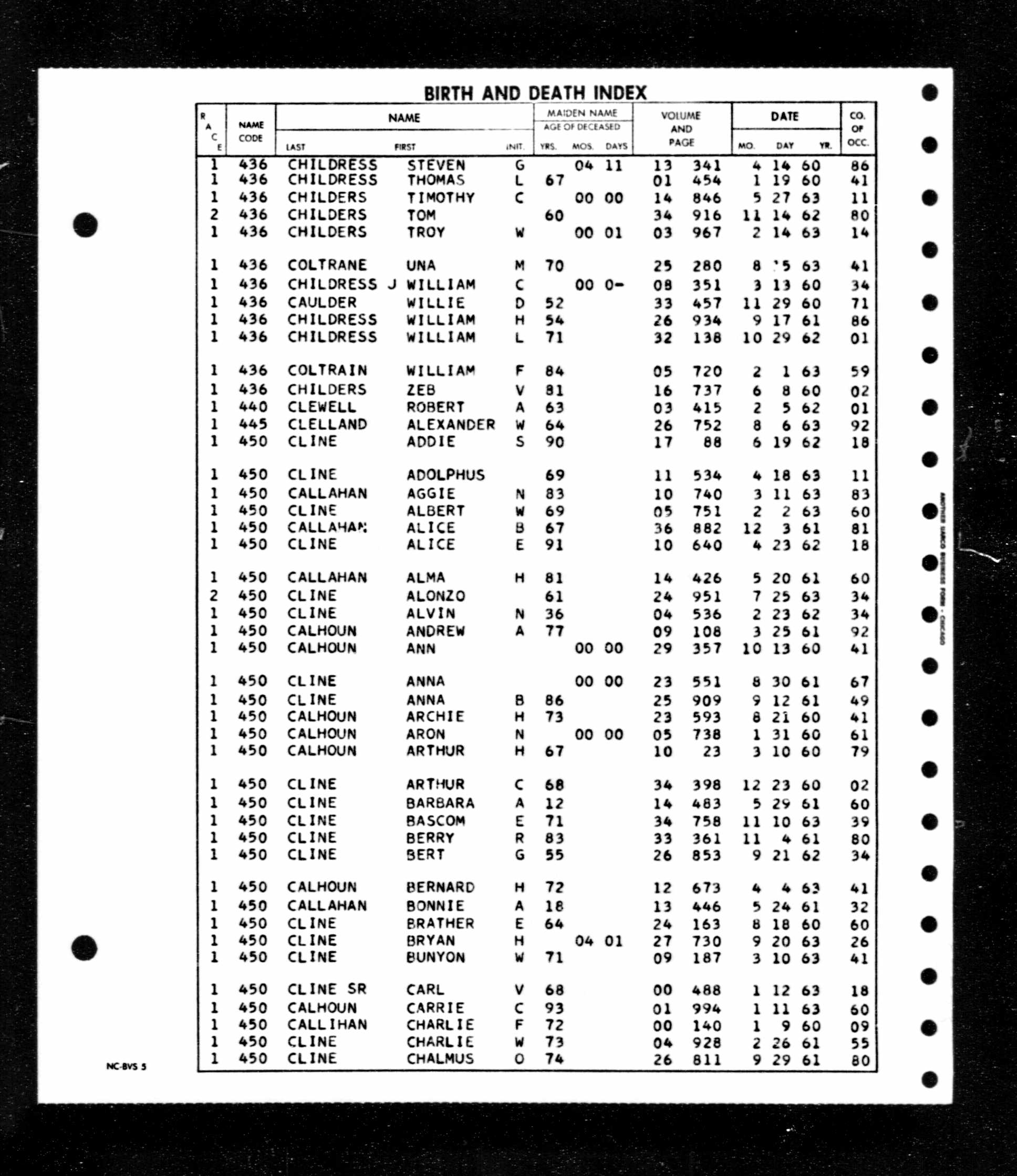 | Cline, Alvin Wade | 9 Jun 1890 | 18 Jul 1981 |