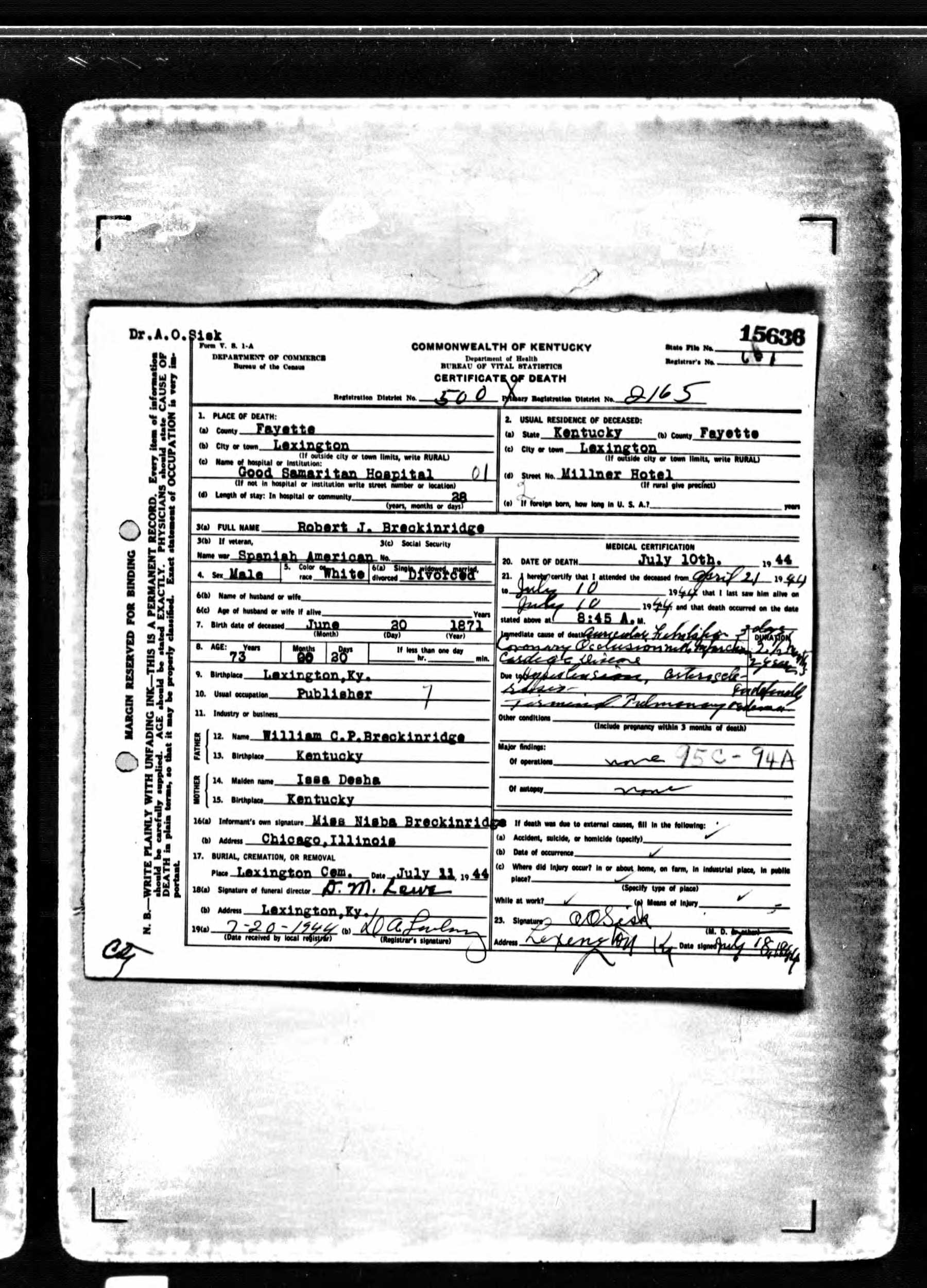 | Breckinridge, Robert Jefferson | 20 Jun 1870 | 10 Jul 1944 | ||