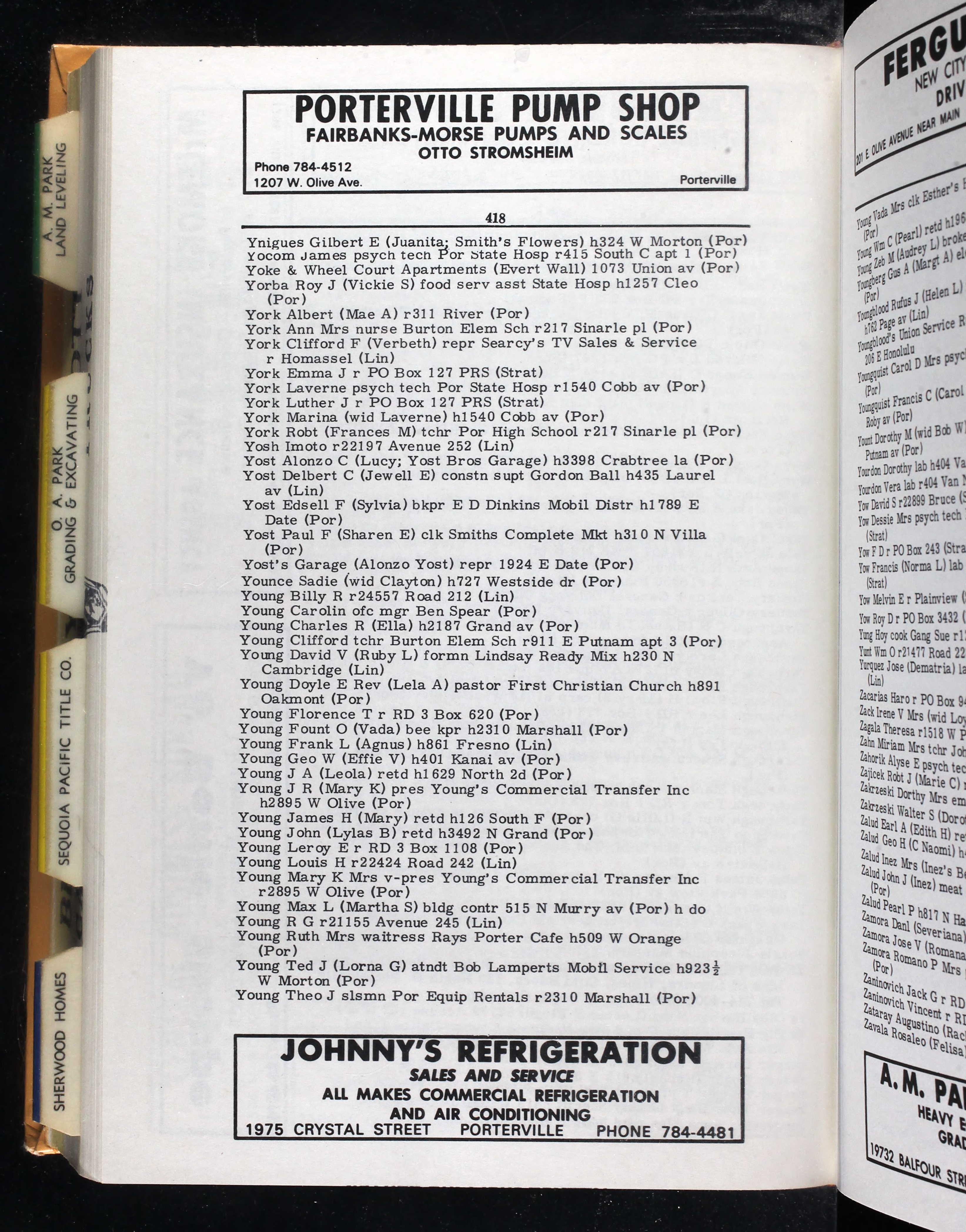 Young Doyle E Rev (Lela A) pastor First Christian Church h891 Oakmont (Por) |
