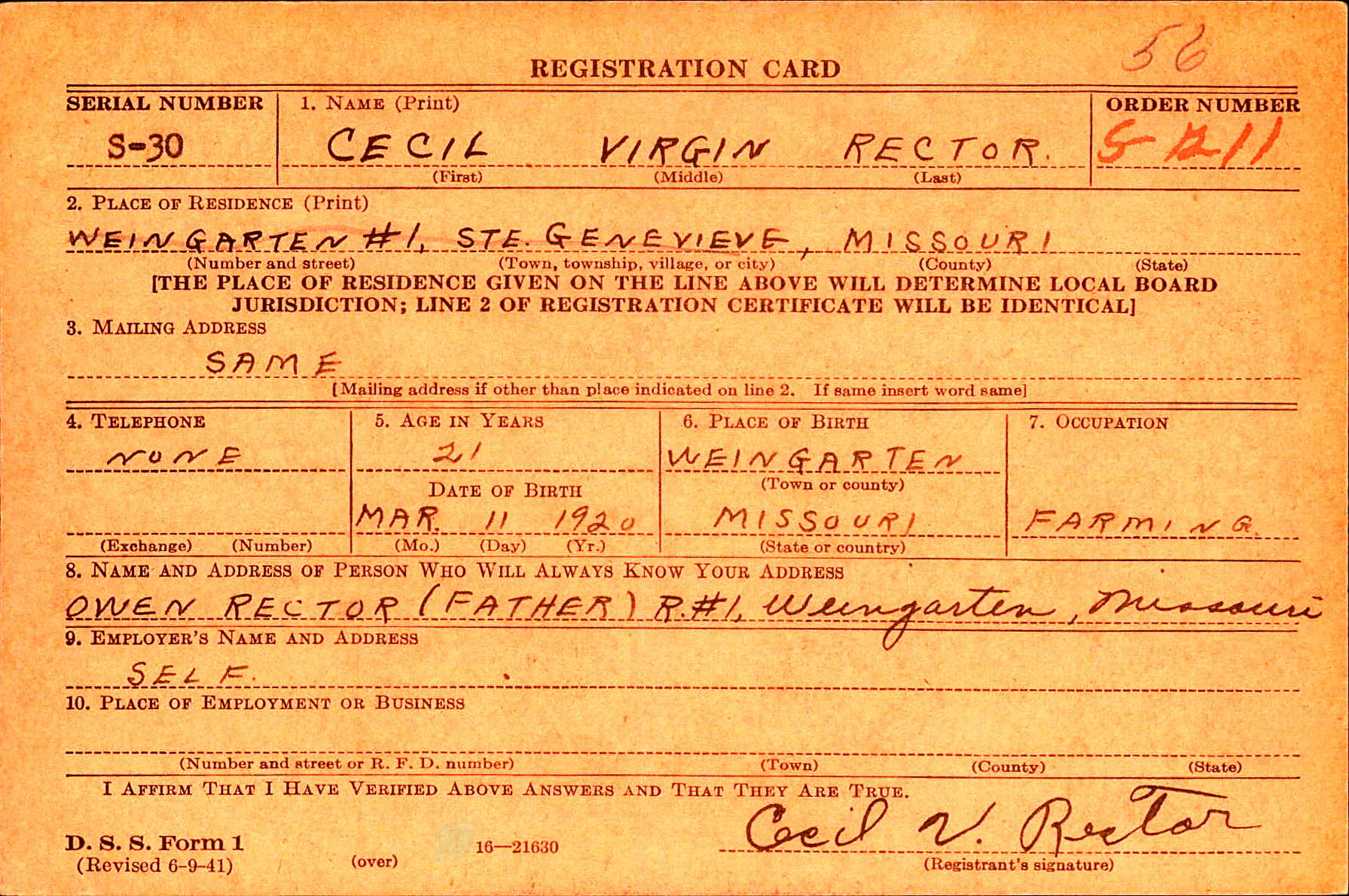 | Birth Name | Rector, Cecil Virgin |