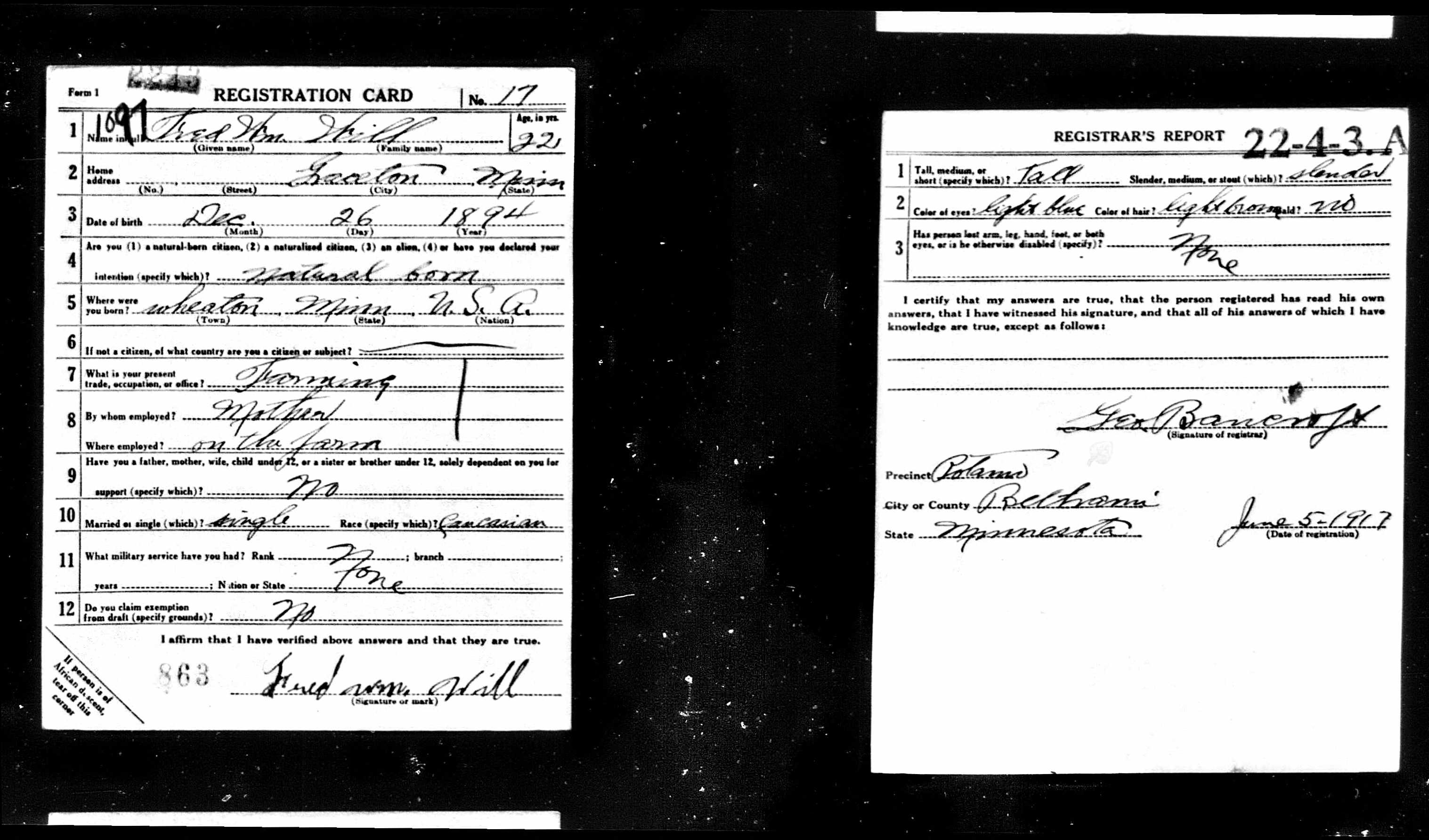 | Draft Registration | 5 Jun 1917 | Beltrami, Minnesota, United States of America | ||||||||||||||||||||||||||||||||||||||||||||||||||||||||||||||||||||||||||||||||||||||||||||||||||||
