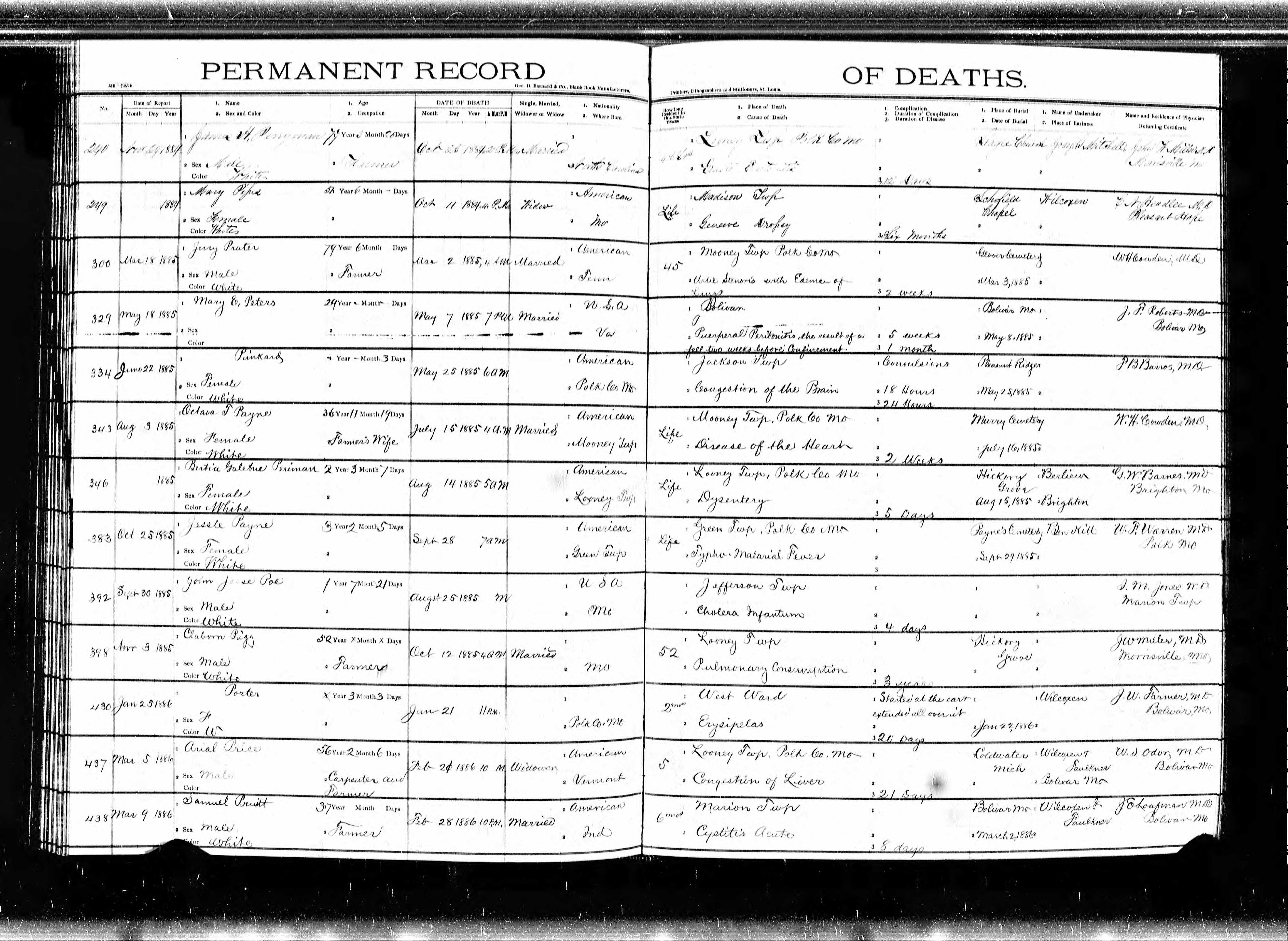 | Death | 12 Oct 1885 | East Looney, Polk, Missouri, United States of America | 5a 5b | ||||||||||||||||||||||||||||||||||||||||||||||||||||||||||||||||||||||||||||||||||||||||||||||