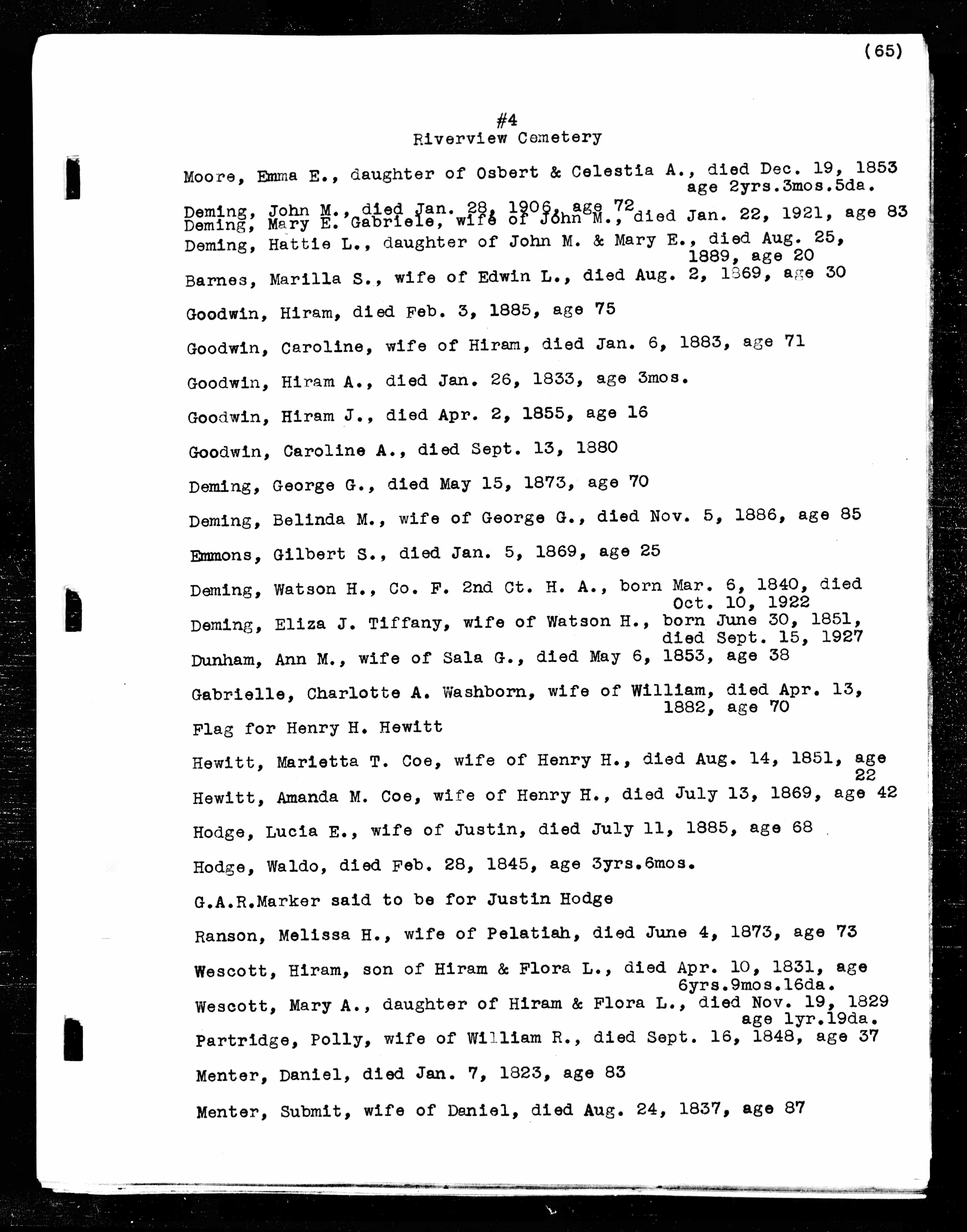 | Deming, George Gilbert Jr. | 13 Jan 1831 | 6 Jun 1913 |