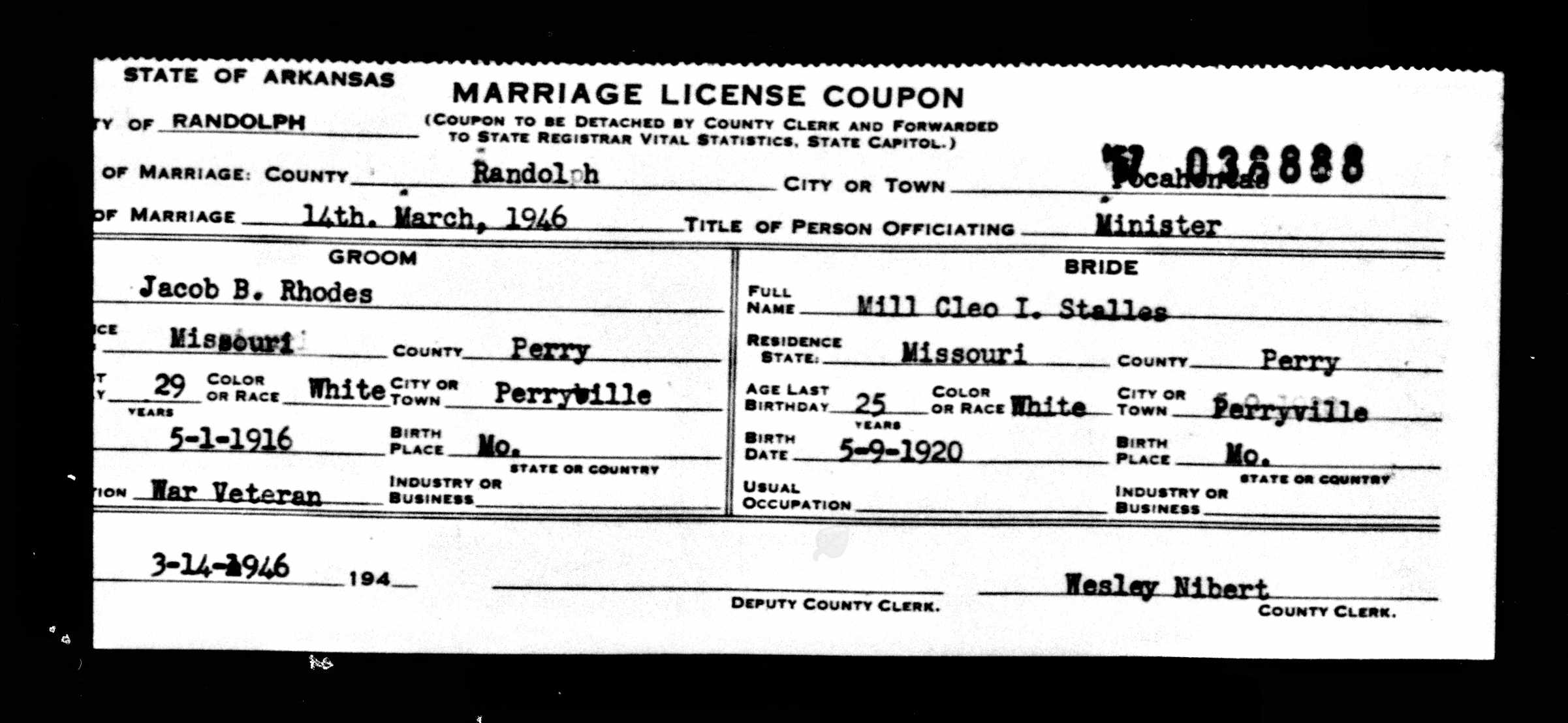 | Married | Husband | Rhodes, Jacob Benton ( * 28 May 1916 + 31 Jul 1998 ) | |||||||||||||