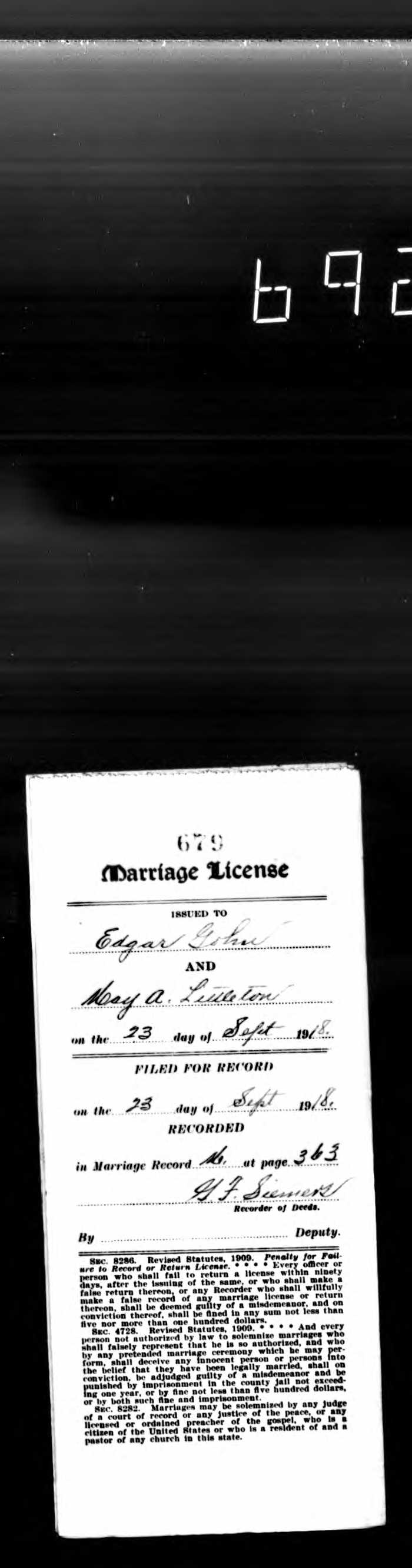 | Married | Wife | Littleton, May Adelia ( * 12 Mar 1888 + 24 Aug 1986 ) | |||||||||||||