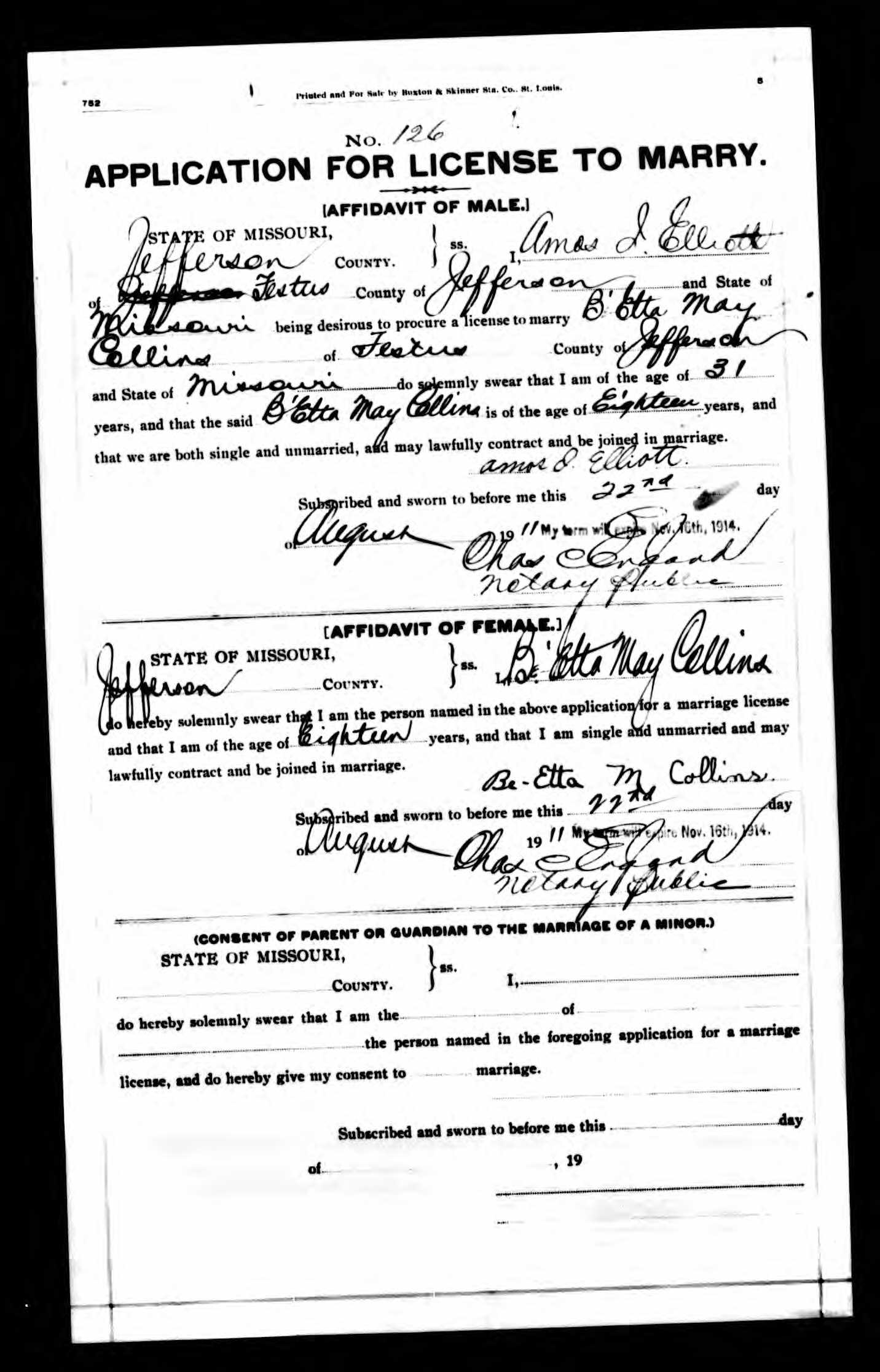 | Married | Wife | Collins, BeEtta May ( * 25 May 1893 + 7 Apr 1995 ) | |||||||||||||||||||||||||||