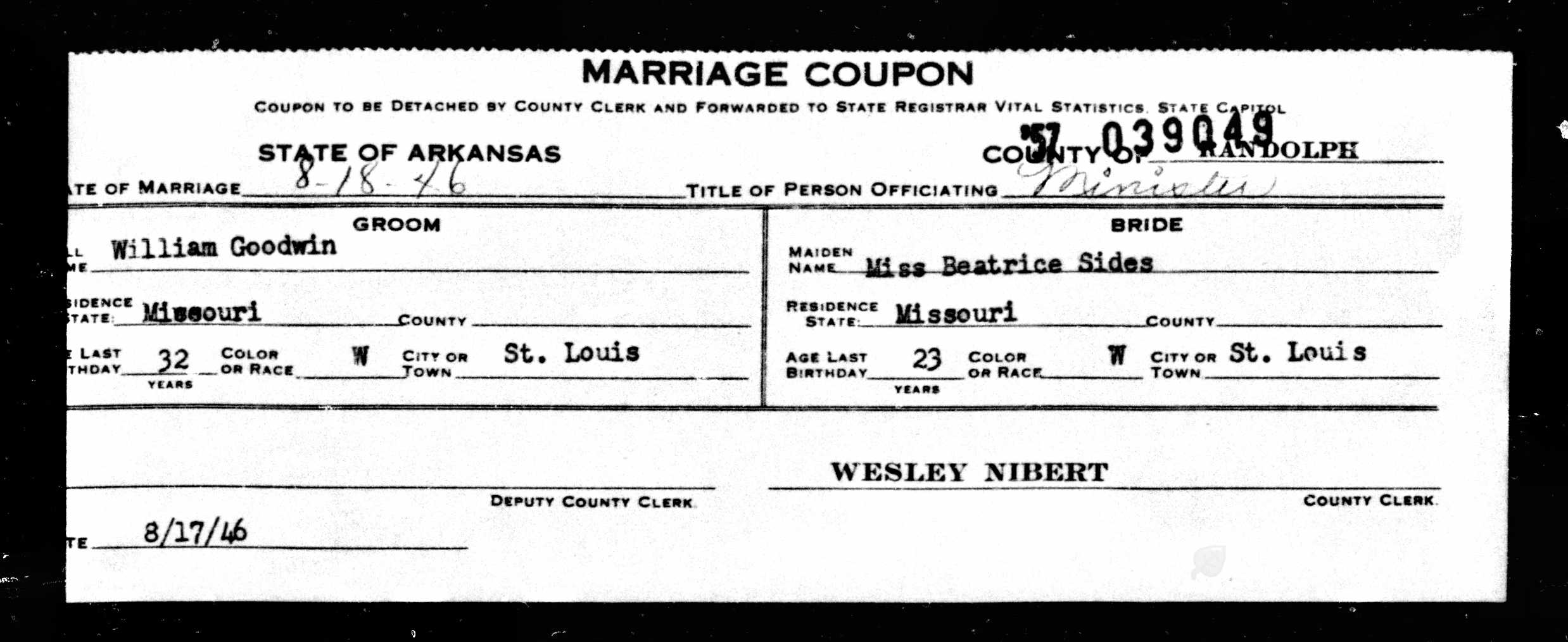 | Married | Husband | Goodwin, William Carter ( * 31 Dec 1912 + 13 Sep 1975 ) | |||||||||||||
