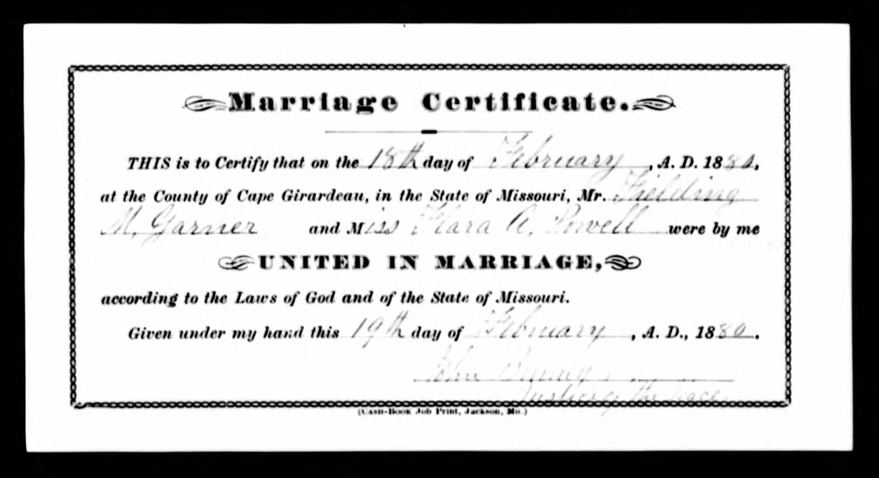 | Married | Husband | Garner, Fielding Marion ( * 19 Oct 1854 + 7 Oct 1928 ) | ||||||||||||||||||||||||