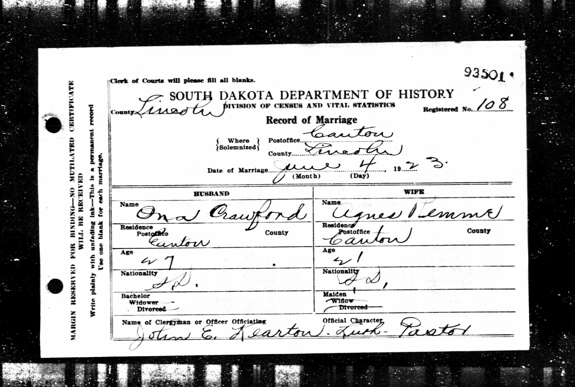| Married | Husband | Crawford, Ona Wheatley ( * 20 Mar 1896 + 1 Feb 1969 ) | |||||||||||||