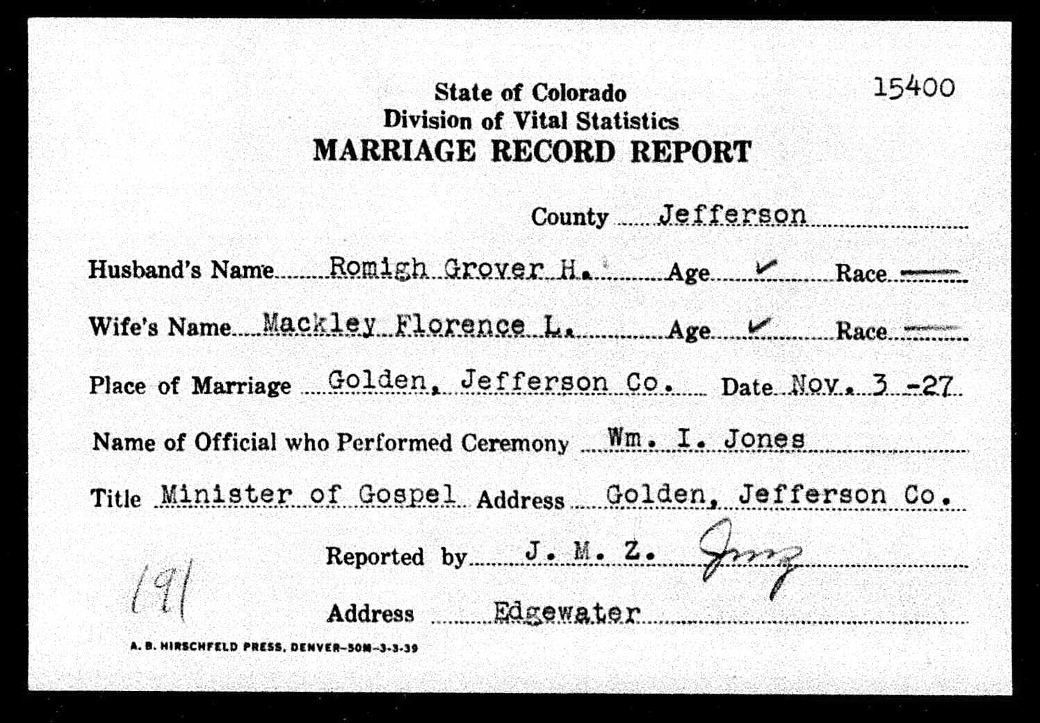 Family of Romigh, Grover H. and Mackley, Florence Leola