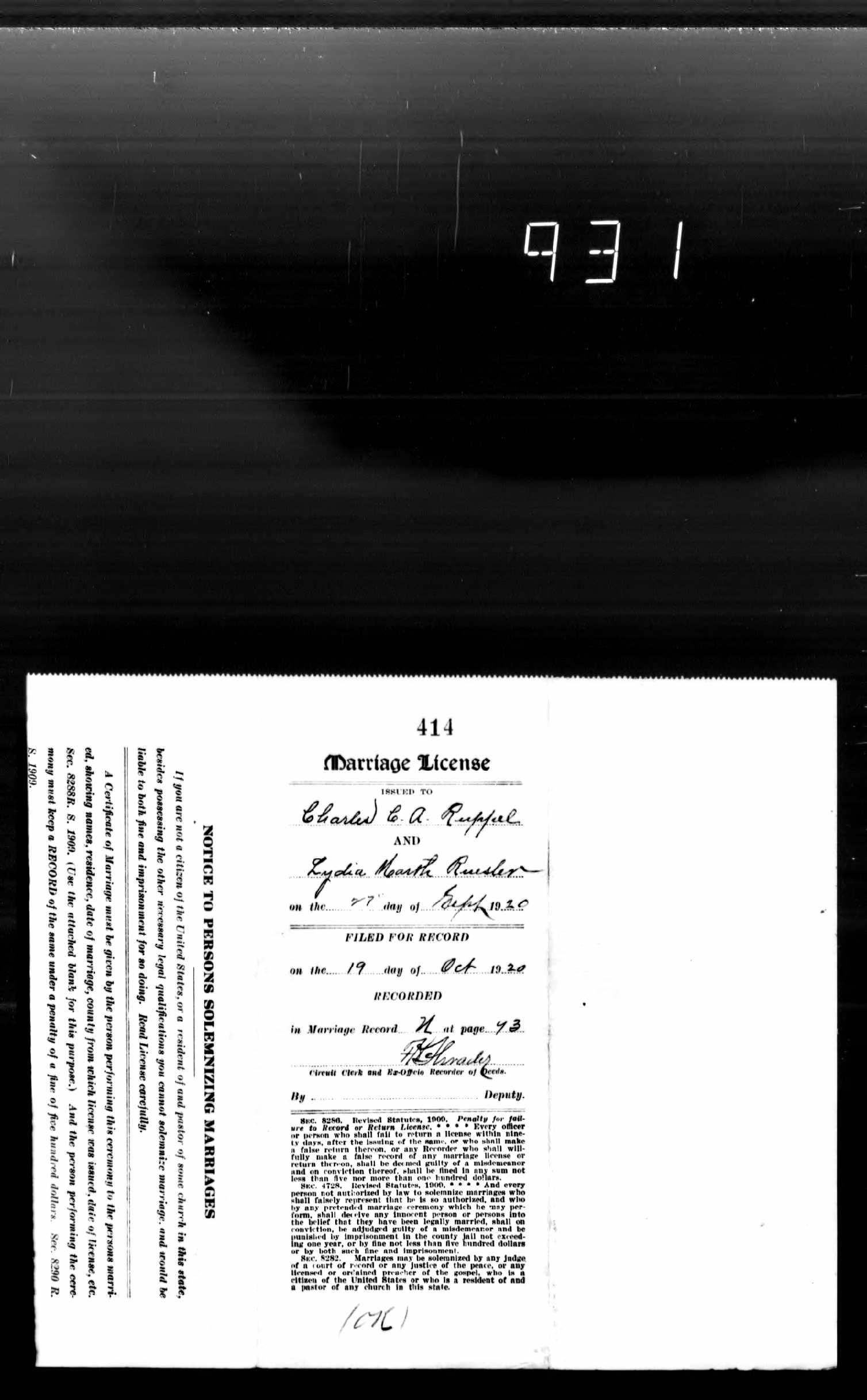 | Married | Husband | Ruppel, Charley Kasper Alfred ( * 7 Nov 1894 + 15 Sep 1976 ) | |||||||||||||