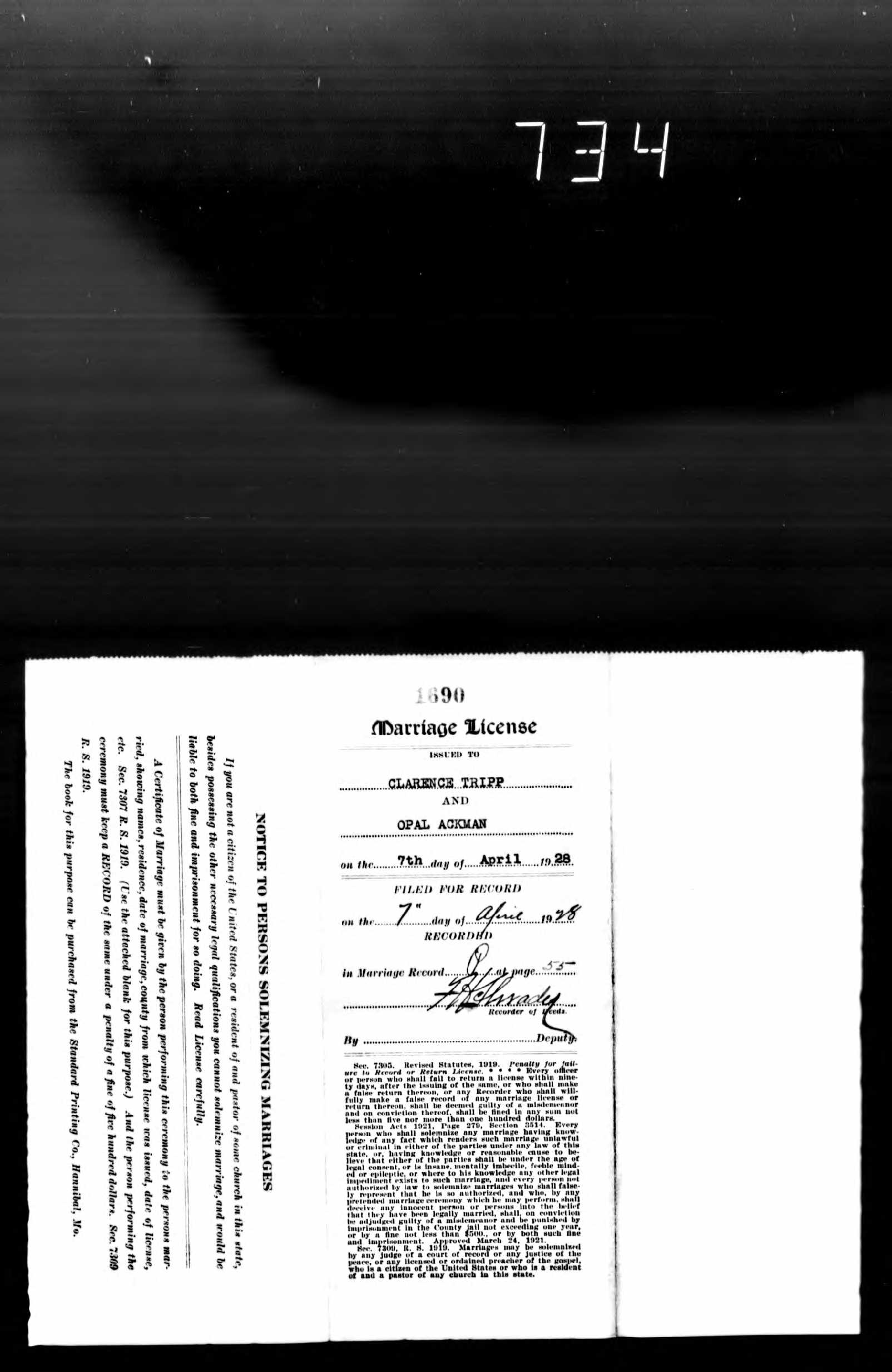 Family of Tripp, Clarence Edward and Ackman, Opal Louise