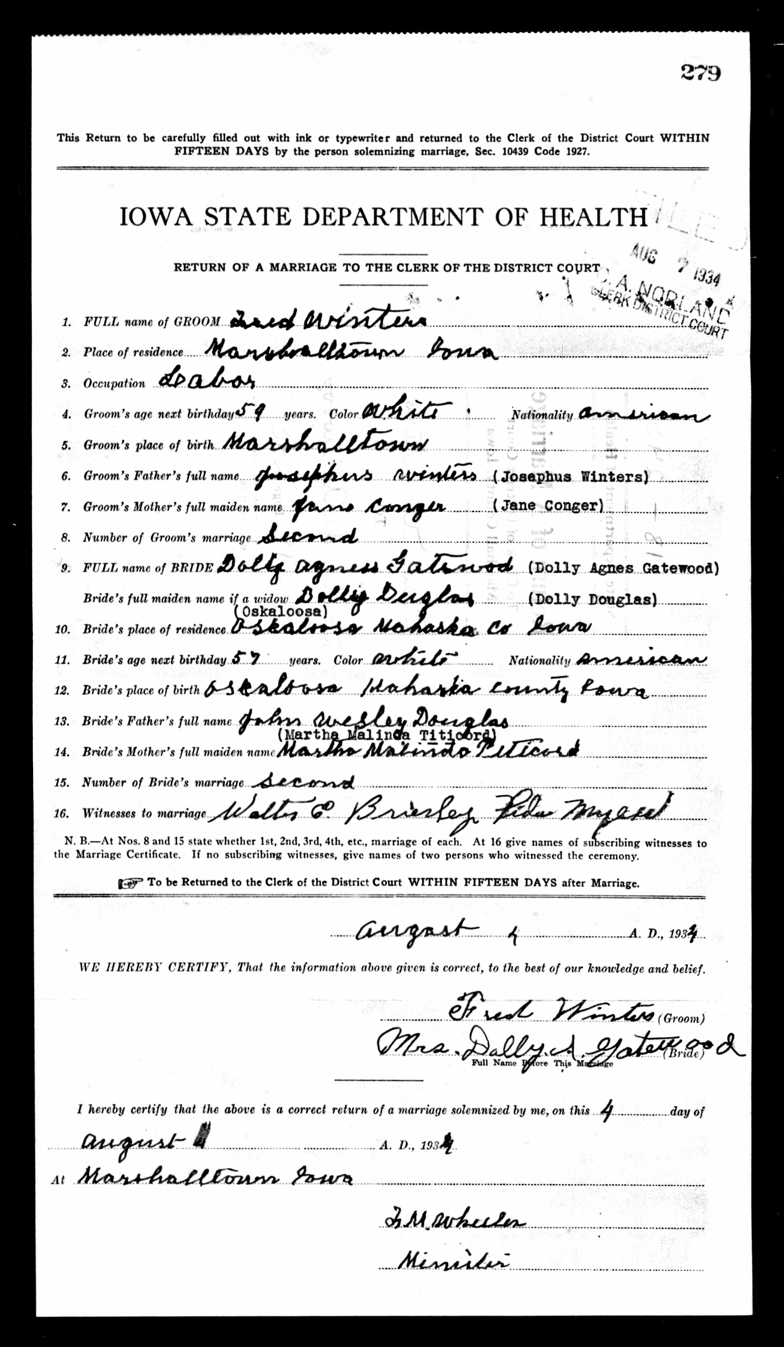 | Married | Husband | Winters, Frederick ( * 26 Aug 1876 + 24 Dec 1960 ) | |||||||||||||