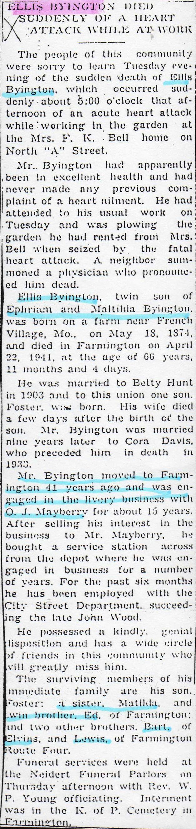 Obituary, Ellis Byington