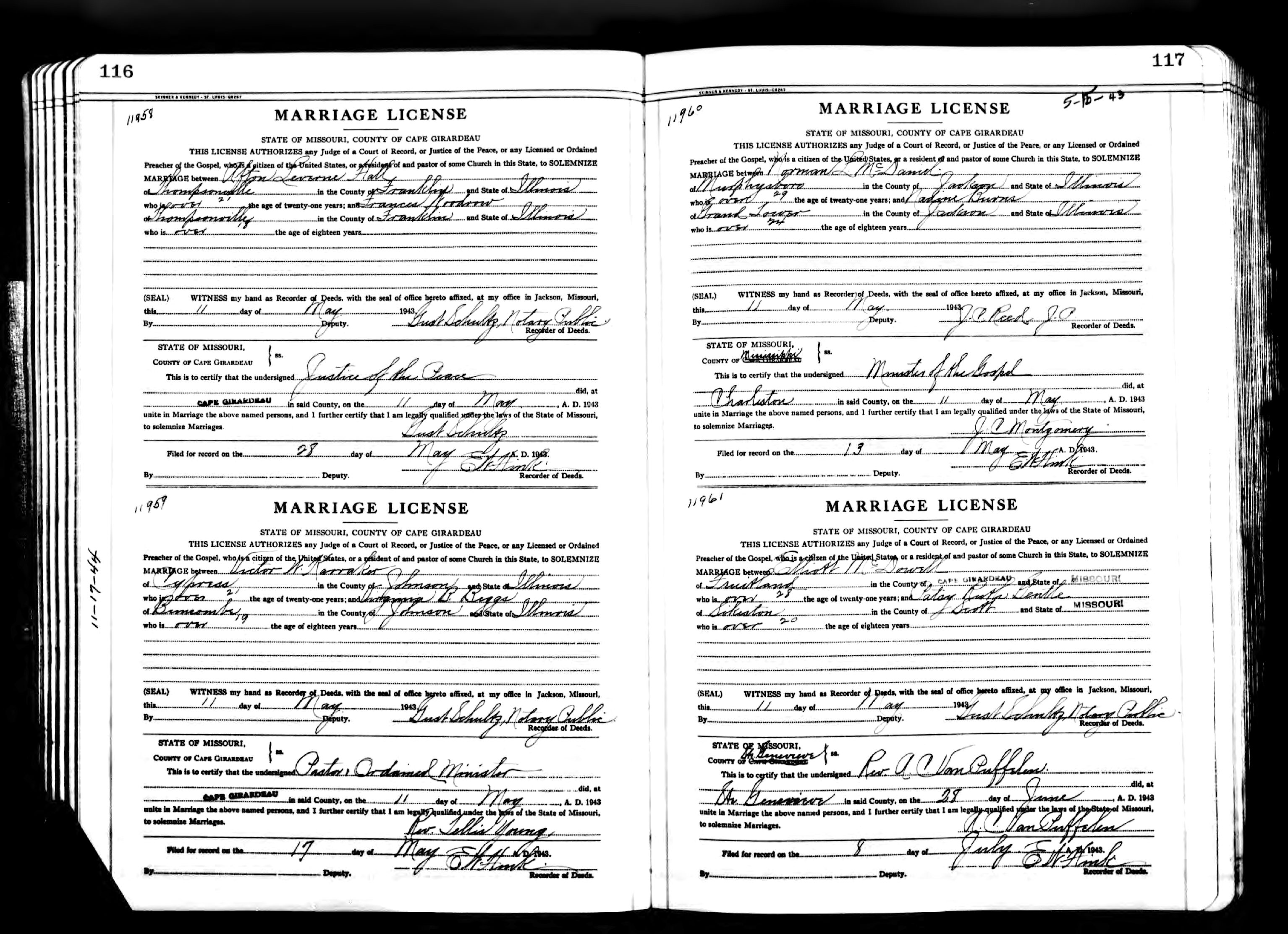 Missouri Marriage Record, Elliott McDowell and Patsy Ruth Gentle