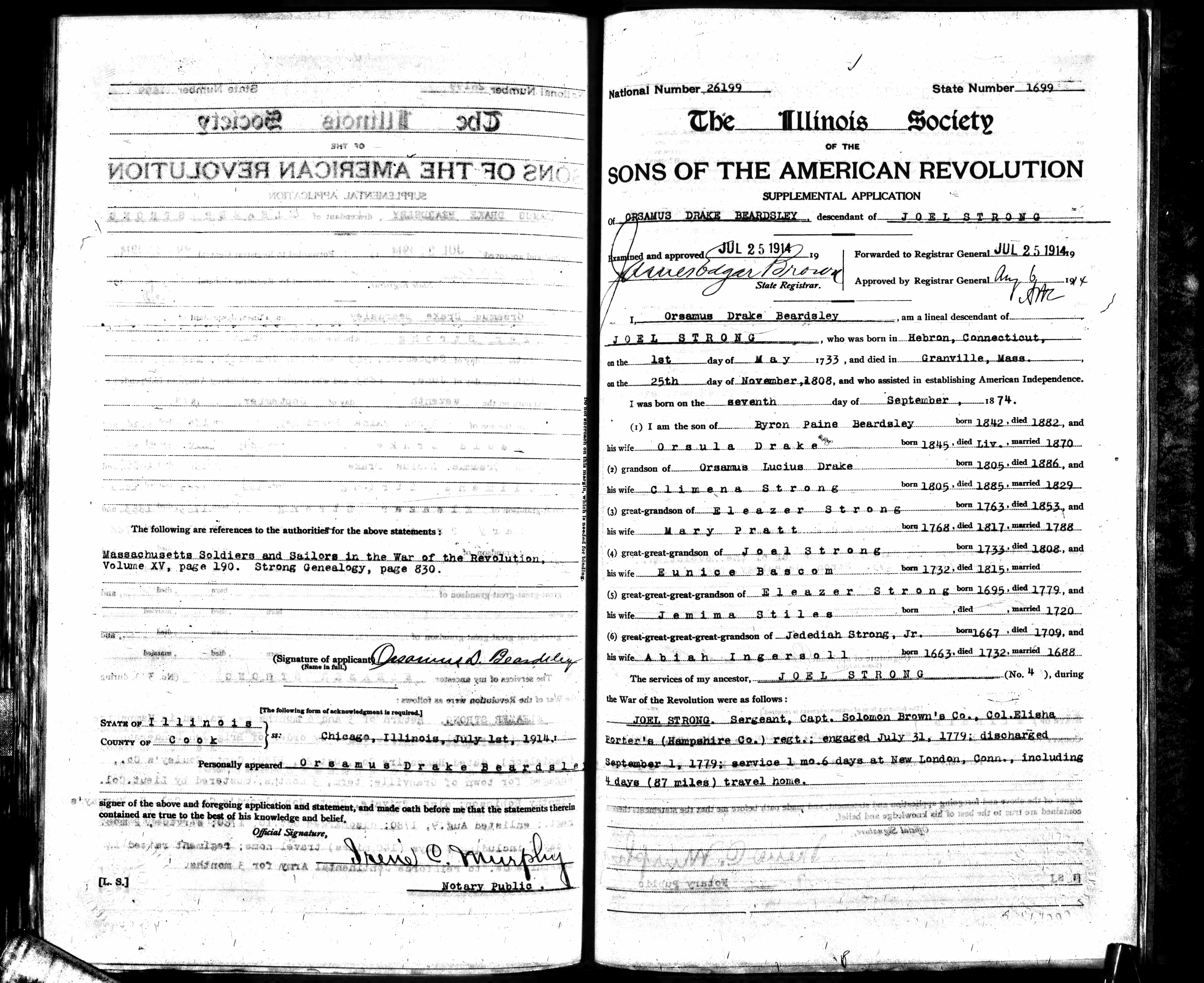 Sons of the American Revolution Application for Orsamus Drake Beardsley