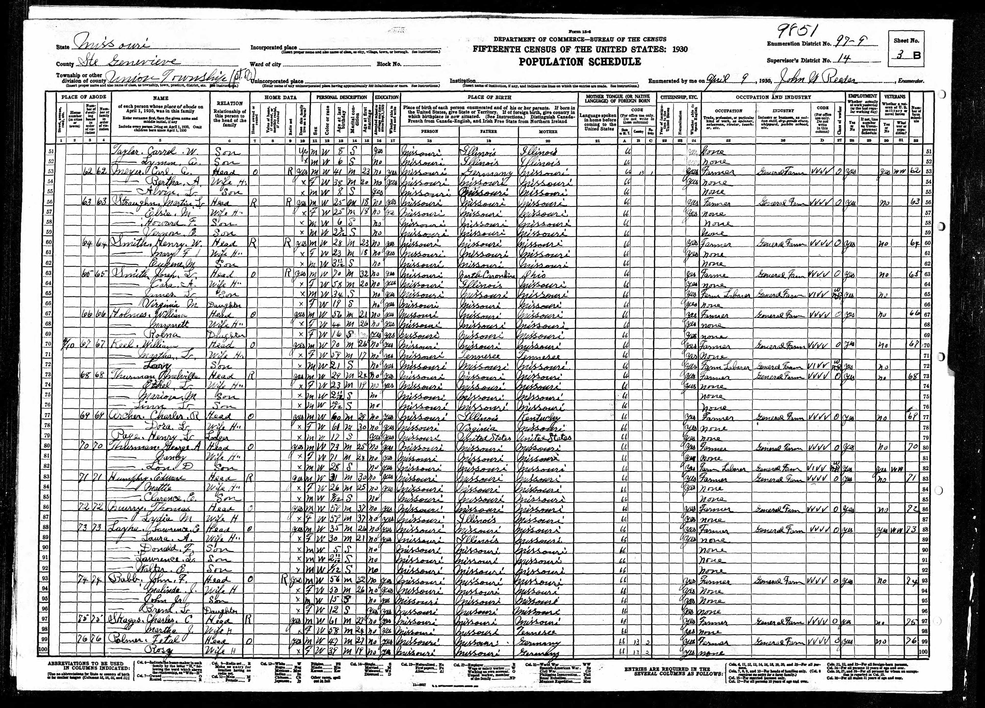1930 Census, Union township, Ste. Genevieve county, Missouri