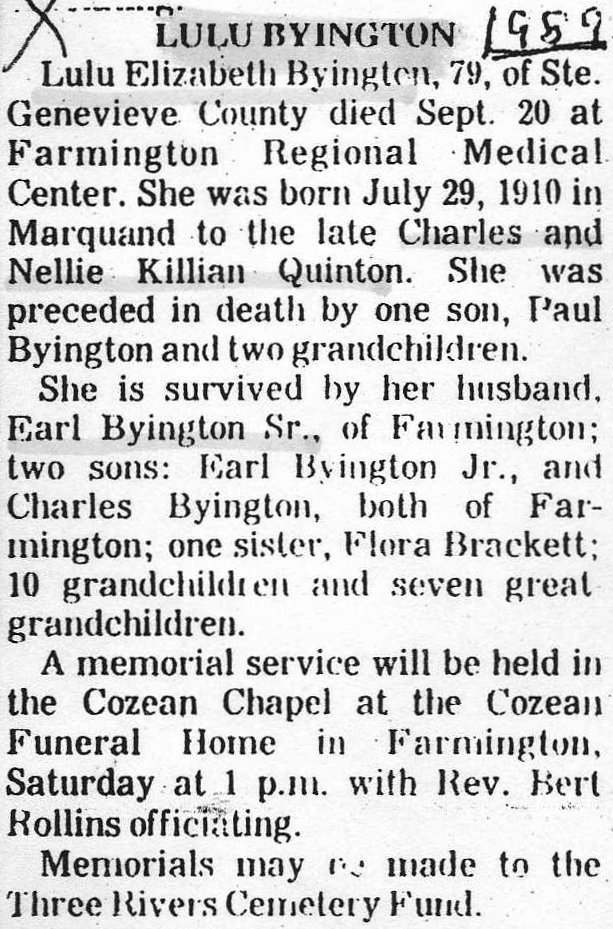 Obituary, Lulu Byington