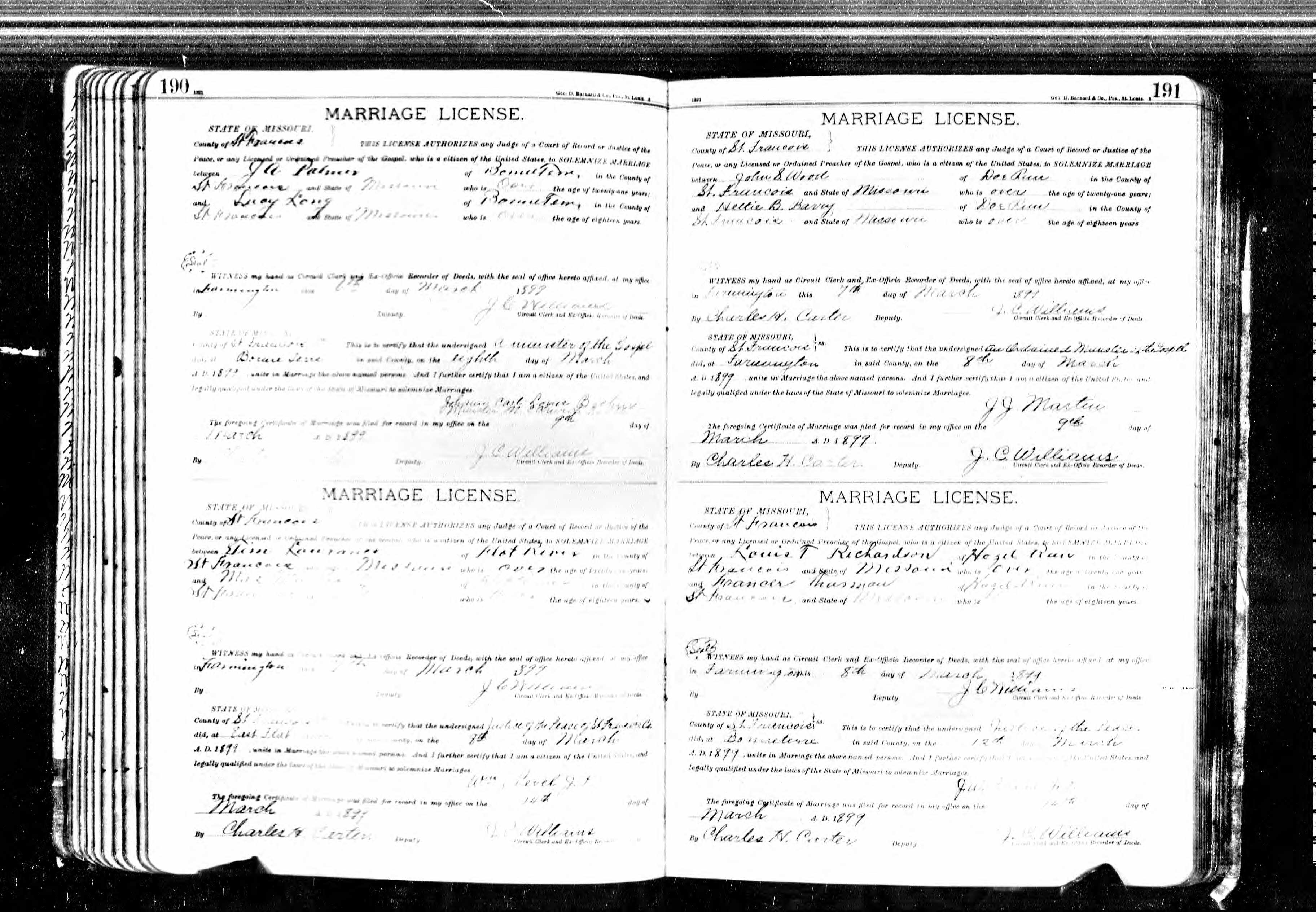 Missouri Marriage Record, Louis T. Richardson and Frances Thurman
