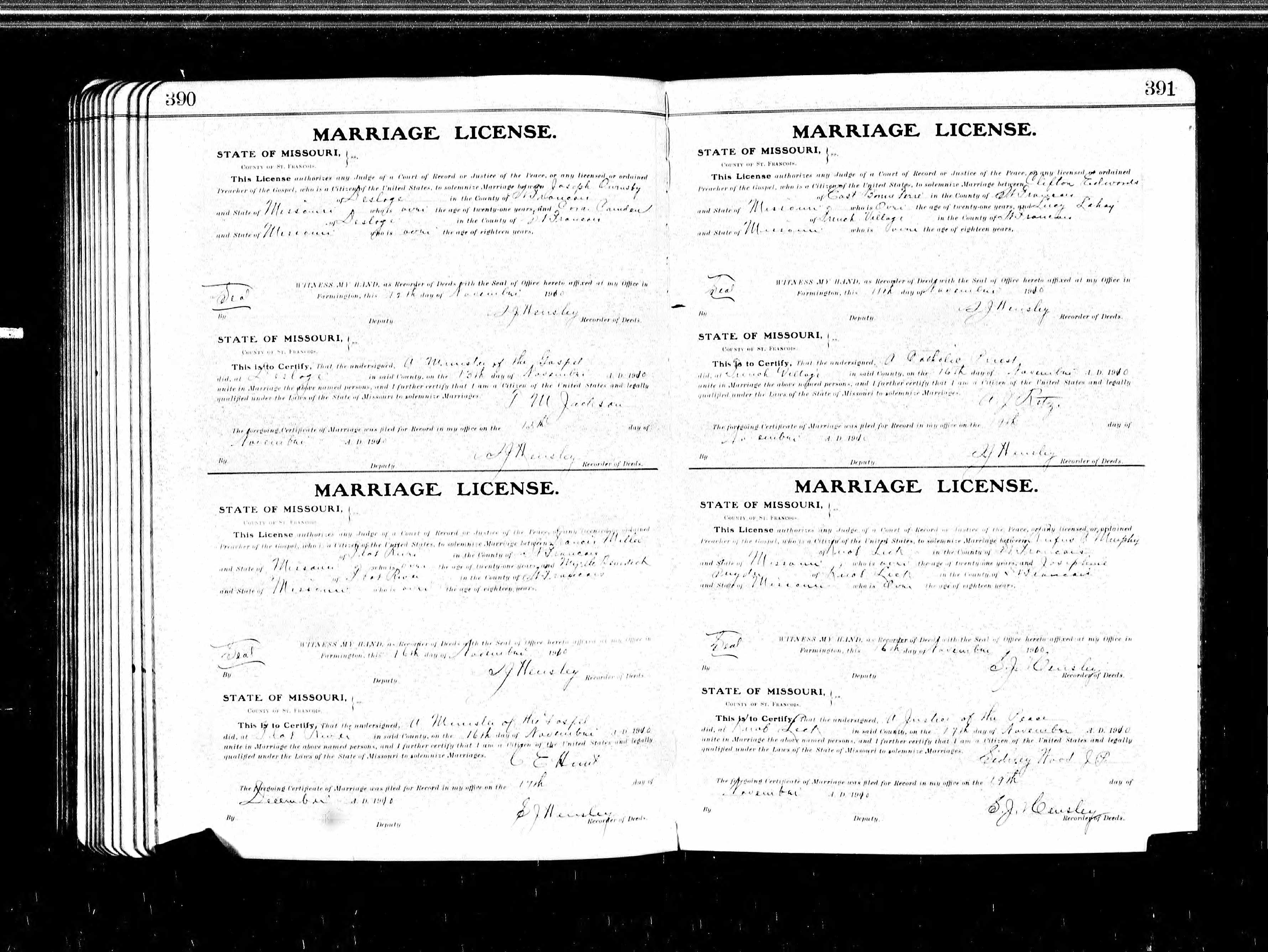 Missouri Marriage Record, Clifton Edwards and Lucy Lahay