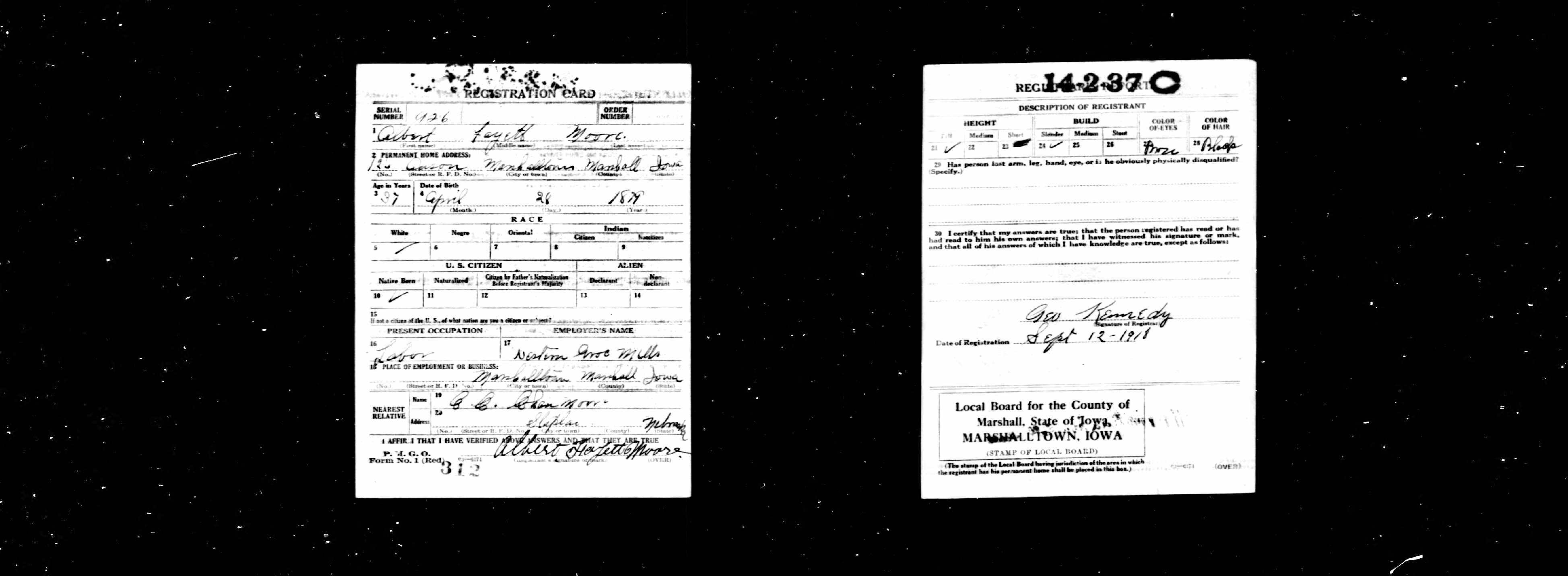 WWI Draft Registration, Albert Fayett Moore